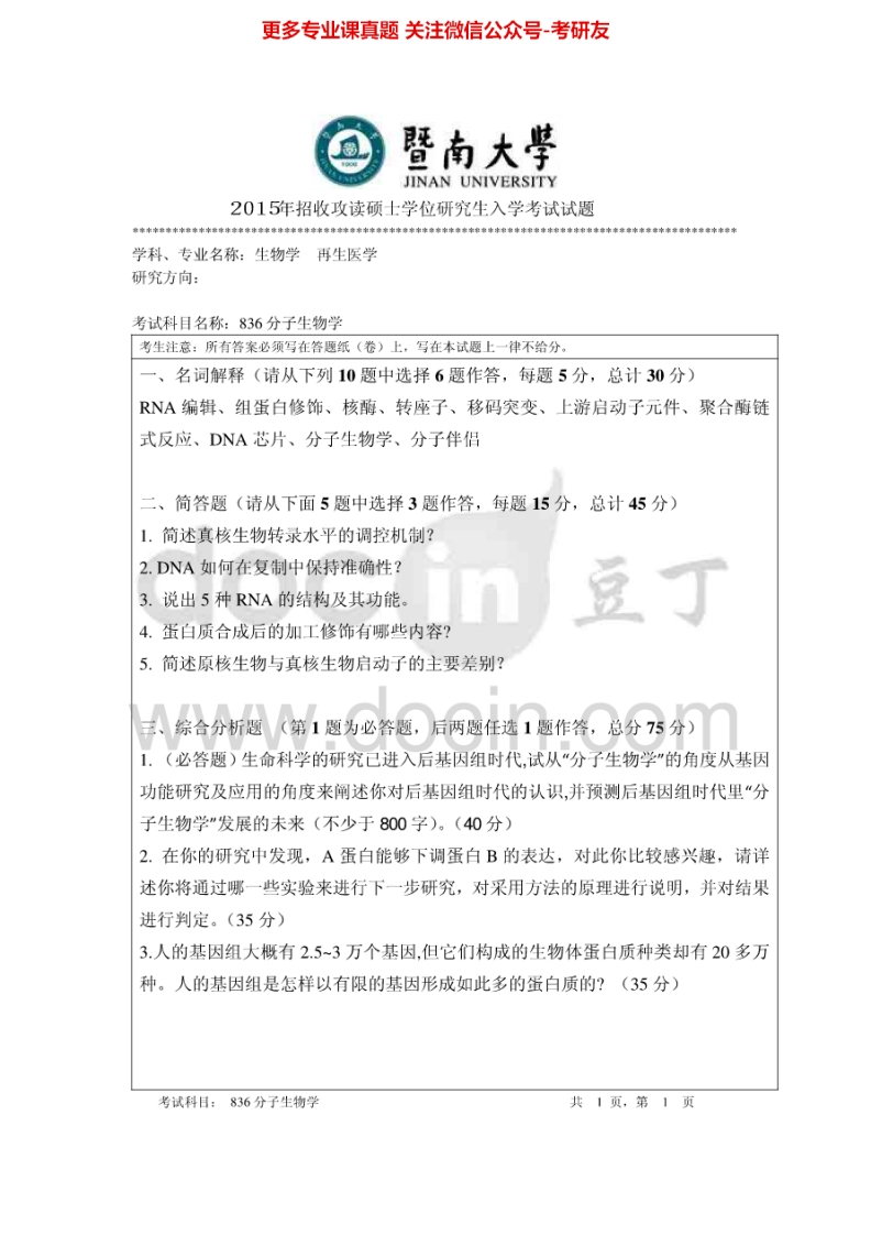 暨南大学836分子生物学2014-2015考研真题汇编.Image.Marked