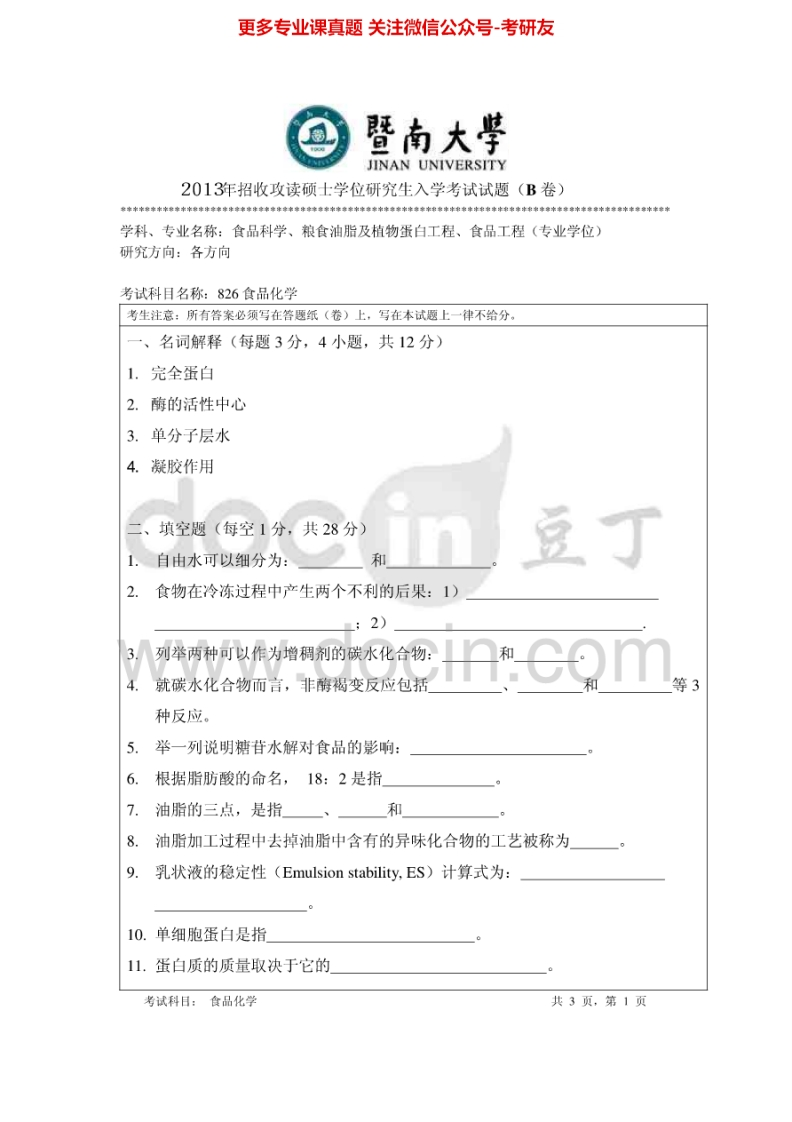 暨南大学826食品化学2012-2015考研真题汇编.Image.Marked-学习资源网 - 分享优质学习资料