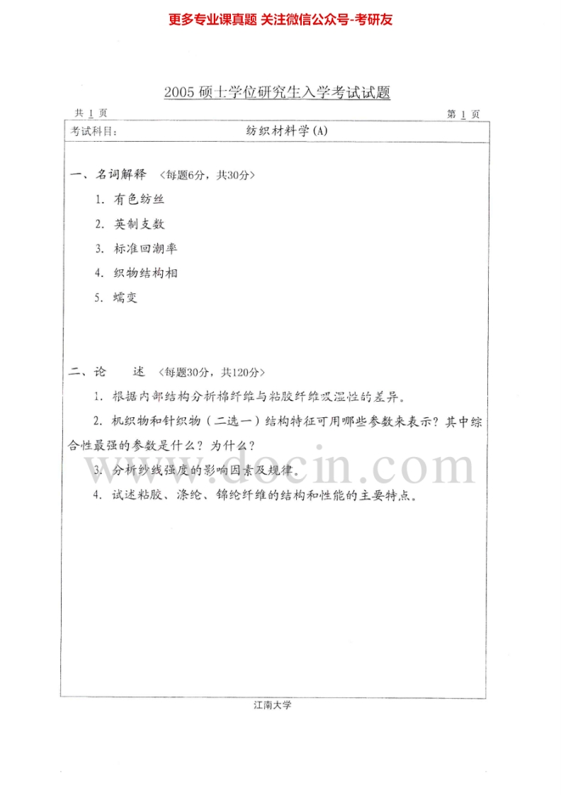江南大学814纺织材料学2003-2008考研真题汇编.Image.Marked猴哥6个月前发布关注私信0.88MB6页05015江南大学814纺织材料学2003-2008考研真题汇编.Image.Marked此内容为免费资源,请登录后查看¥0 登录查看免费资源 第1页 / 共6页 第2页 / 共6页 第3页 / 共6页 该文档为免费文档,您可直接下载完整版进行阅读 © 版权声明文章版权归作者所有,未经允许请勿转载。THE END《江南大学》(814)纺织材料学考研资料考研专业课 喜欢就支持一下吧点赞15赞赏 分享QQ空间微博QQ好友海报分享复制链接收藏