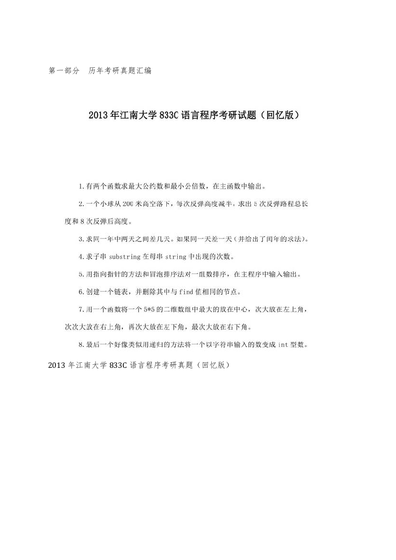 江南大学833C语言程序历年考研真题汇编猴哥6个月前发布关注私信2.56MB56页07957江南大学833C语言程序历年考研真题汇编此内容为免费资源,请登录后查看¥0 登录查看免费资源 第1页 / 共56页 第2页 / 共56页 第3页 / 共56页 该文档为免费文档,您可直接下载完整版进行阅读 © 版权声明文章版权归作者所有,未经允许请勿转载。THE END考研专业课 喜欢就支持一下吧点赞57赞赏 分享QQ空间微博QQ好友海报分享复制链接收藏