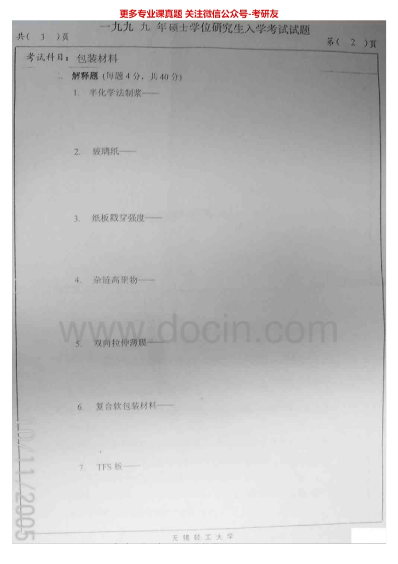 江南大学821包装材料学1999、2004、2007考研真题汇编.Image.Marked猴哥6个月前发布关注私信2.36MB7页09232江南大学821包装材料学1999、2004、2007考研真题汇编.Image.Marked此内容为免费资源,请登录后查看¥0 登录查看免费资源 第1页 / 共7页 第2页 / 共7页 第3页 / 共7页 该文档为免费文档,您可直接下载完整版进行阅读 © 版权声明文章版权归作者所有,未经允许请勿转载。THE END《江南大学》(821)包装材料学考研资料考研专业课 喜欢就支持一下吧点赞32赞赏 分享QQ空间微博QQ好友海报分享复制链接收藏
