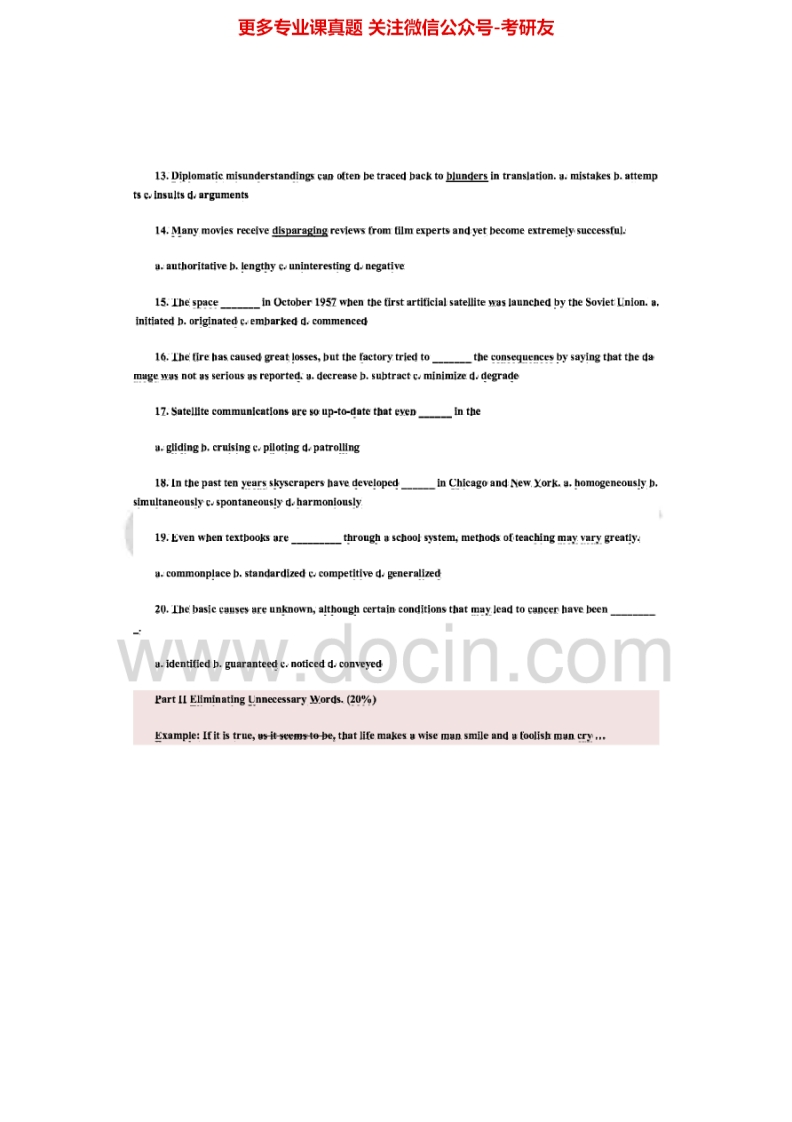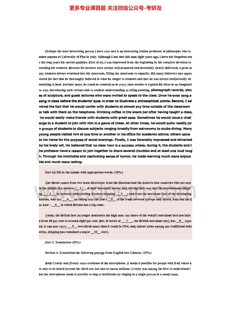 江苏大学620基础英语(含写作)2004、2006-2007、2009-2015考研真题汇编猴哥6个月前发布关注私信32.21MB94页03556江苏大学620基础英语(含写作)2004、2006-2007、2009-2015考研真题汇编此内容为免费资源,请登录后查看¥0 登录查看免费资源 第1页 / 共94页 第2页 / 共94页 第3页 / 共94页 该文档为免费文档,您可直接下载完整版进行阅读 © 版权声明文章版权归作者所有,未经允许请勿转载。THE END考研专业课 喜欢就支持一下吧点赞56赞赏 分享QQ空间微博QQ好友海报分享复制链接收藏