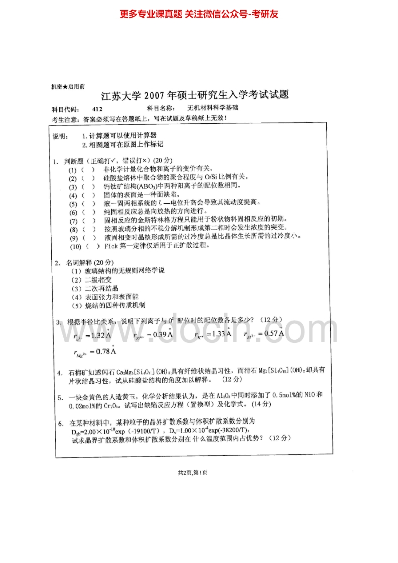 江苏大学816无机材料科学基础2006-2007、2010-2015考研真题汇编猴哥6个月前发布关注私信4.08MB16页06323江苏大学816无机材料科学基础2006-2007、2010-2015考研真题汇编此内容为免费资源,请登录后查看¥0 登录查看免费资源 第1页 / 共16页 第2页 / 共16页 第3页 / 共16页 该文档为免费文档,您可直接下载完整版进行阅读 © 版权声明文章版权归作者所有,未经允许请勿转载。THE END《江苏大学》(816)冶金物理化学考研资料考研专业课 喜欢就支持一下吧点赞23赞赏 分享QQ空间微博QQ好友海报分享复制链接收藏