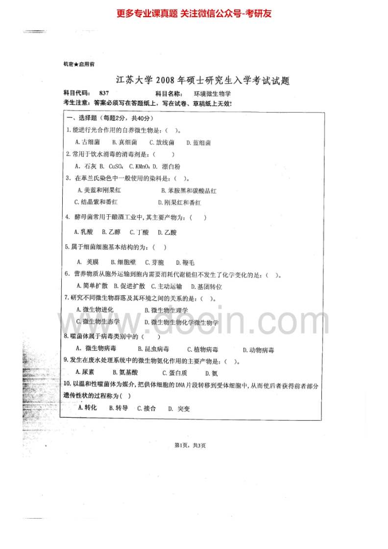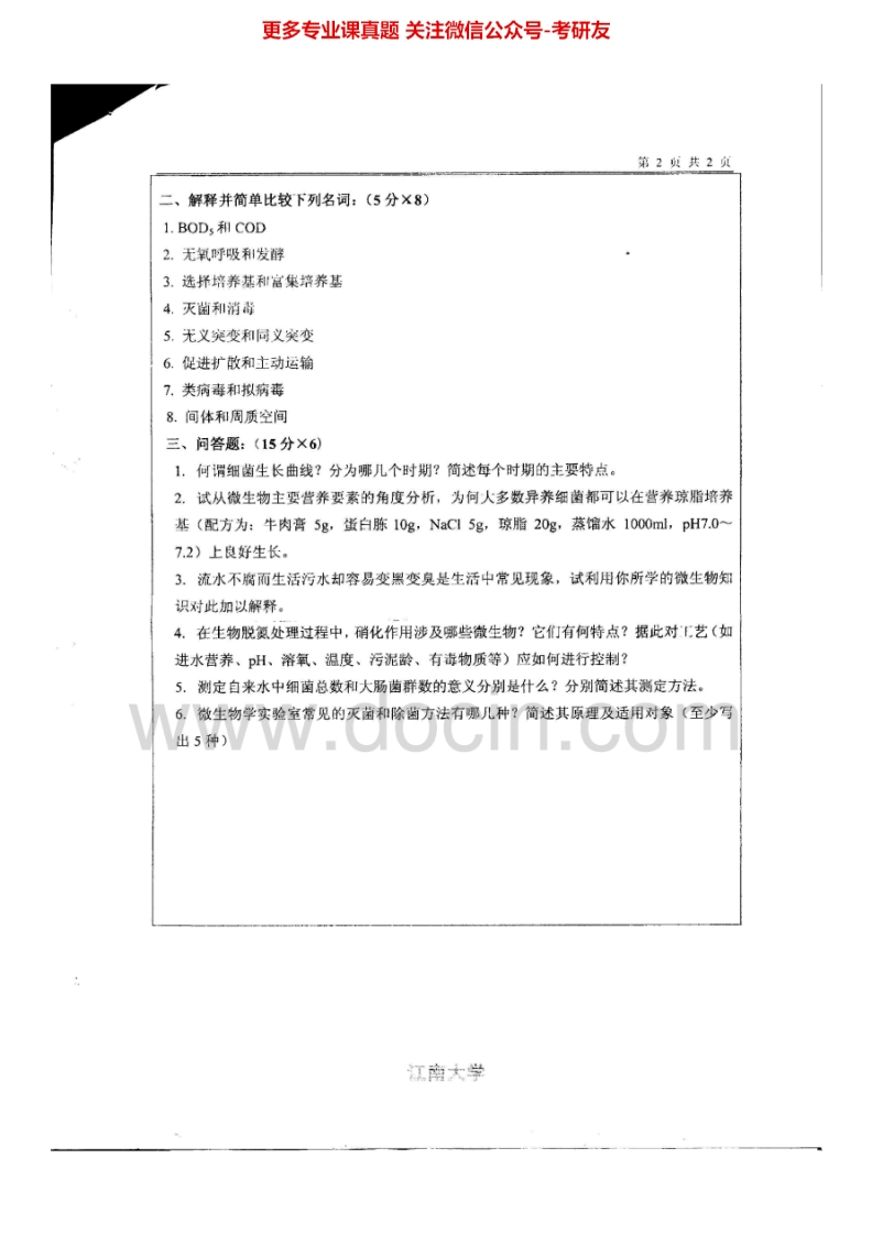 江苏大学837环境微生物学2007-2015考研真题汇编猴哥6个月前发布关注私信4.11MB22页04954江苏大学837环境微生物学2007-2015考研真题汇编此内容为免费资源,请登录后查看¥0 登录查看免费资源 第1页 / 共22页 第2页 / 共22页 第3页 / 共22页 该文档为免费文档,您可直接下载完整版进行阅读 © 版权声明文章版权归作者所有,未经允许请勿转载。THE END《江苏大学》(837)环境科学与工程基础考研资料考研专业课 喜欢就支持一下吧点赞54赞赏 分享QQ空间微博QQ好友海报分享复制链接收藏