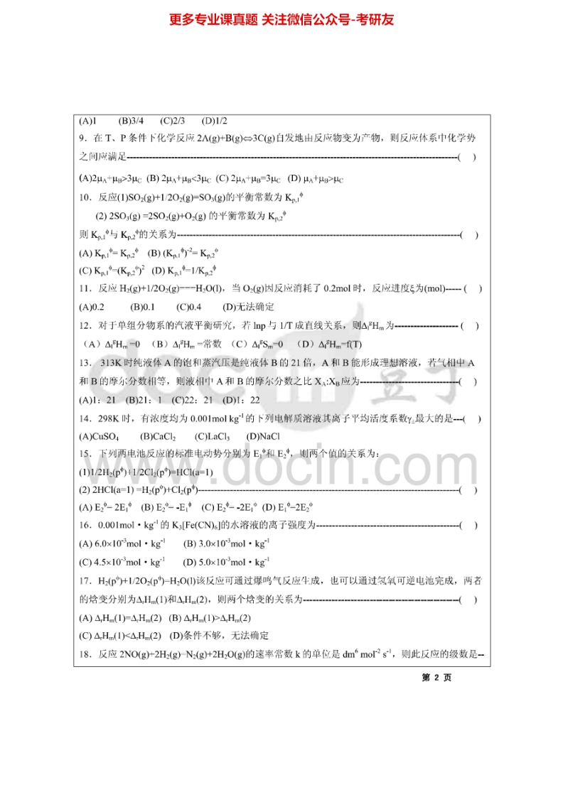 江苏大学858物理化学2004-2013、2015考研真题汇编猴哥6个月前发布关注私信7.19MB41页03340江苏大学858物理化学2004-2013、2015考研真题汇编此内容为免费资源,请登录后查看¥0 登录查看免费资源 第1页 / 共41页 第2页 / 共41页 第3页 / 共41页 该文档为免费文档,您可直接下载完整版进行阅读 © 版权声明文章版权归作者所有,未经允许请勿转载。THE END考研专业课 喜欢就支持一下吧点赞40赞赏 分享QQ空间微博QQ好友海报分享复制链接收藏