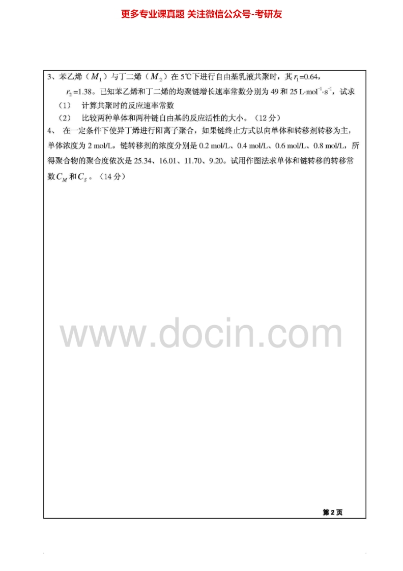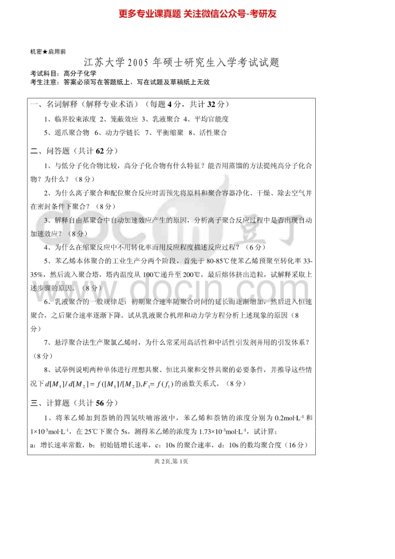 江苏大学817高分子化学2004-2007、2009-2015考研真题汇编-学习资源网 - 分享优质学习资料