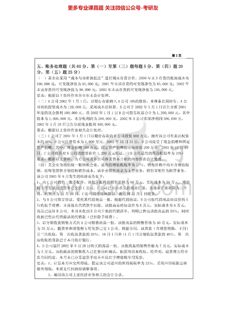 江苏大学847会计学2004-2015考研真题汇编猴哥6个月前发布关注私信6.60MB29页09336江苏大学847会计学2004-2015考研真题汇编此内容为免费资源,请登录后查看¥0 登录查看免费资源 第1页 / 共29页 第2页 / 共29页 第3页 / 共29页 该文档为免费文档,您可直接下载完整版进行阅读 © 版权声明文章版权归作者所有,未经允许请勿转载。THE END《江苏大学》(847)会计学考研资料考研专业课 喜欢就支持一下吧点赞36赞赏 分享QQ空间微博QQ好友海报分享复制链接收藏