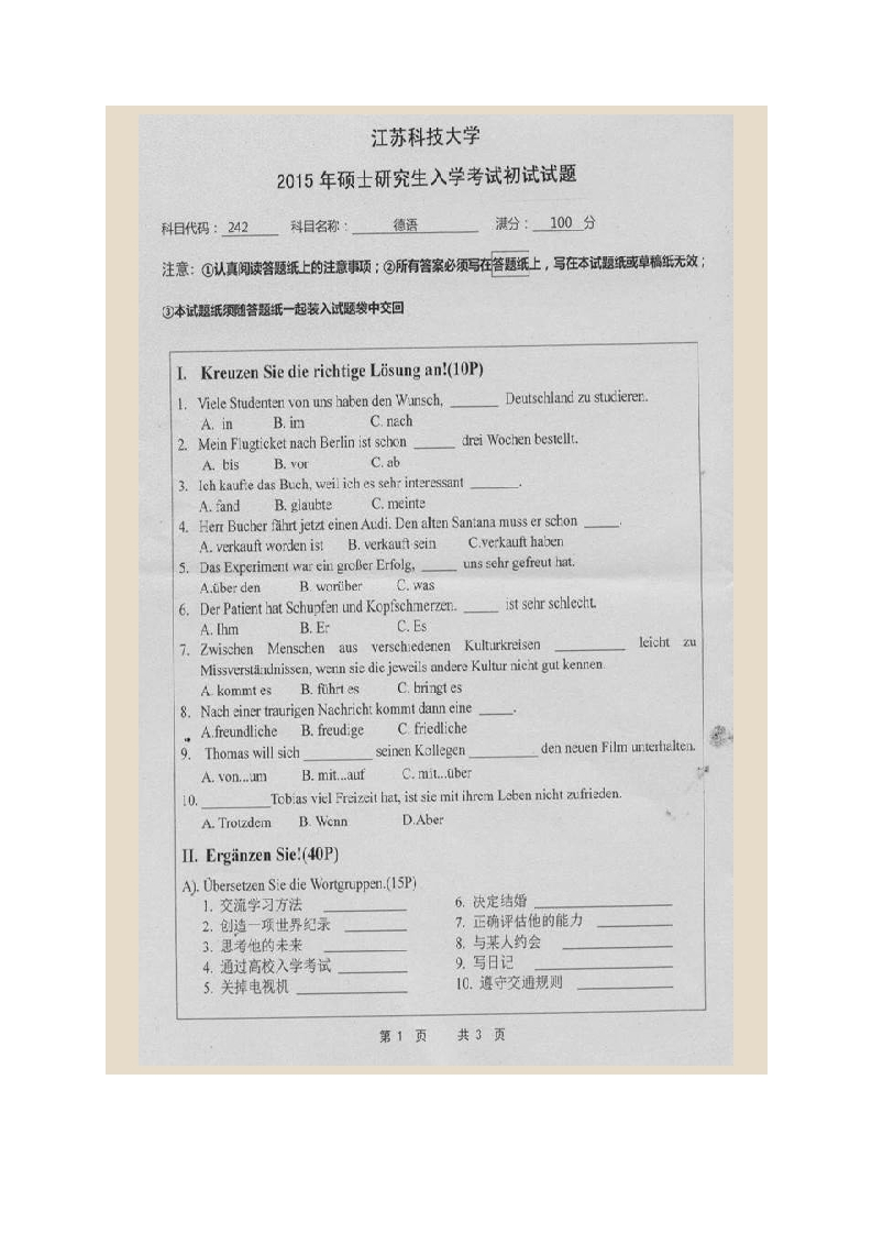 江苏科技大学外国语学院242德语历年考研真题汇编-学习资源网 - 分享优质学习资料