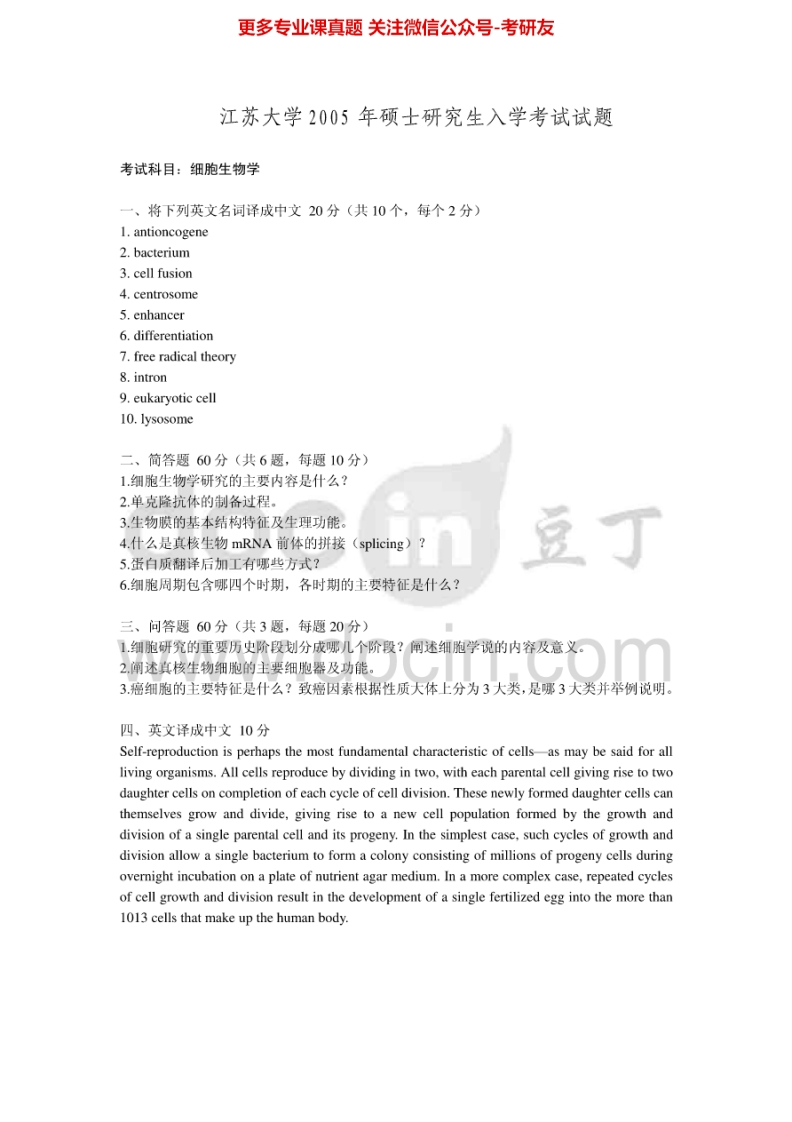 江苏大学细胞生物学历年真题2004-2013考研真题汇编猴哥6个月前发布关注私信3.41MB14页03443江苏大学细胞生物学历年真题2004-2013考研真题汇编此内容为免费资源,请登录后查看¥0 登录查看免费资源 第1页 / 共14页 第2页 / 共14页 第3页 / 共14页 该文档为免费文档,您可直接下载完整版进行阅读 © 版权声明文章版权归作者所有,未经允许请勿转载。THE END考研专业课 喜欢就支持一下吧点赞43赞赏 分享QQ空间微博QQ好友海报分享复制链接收藏
