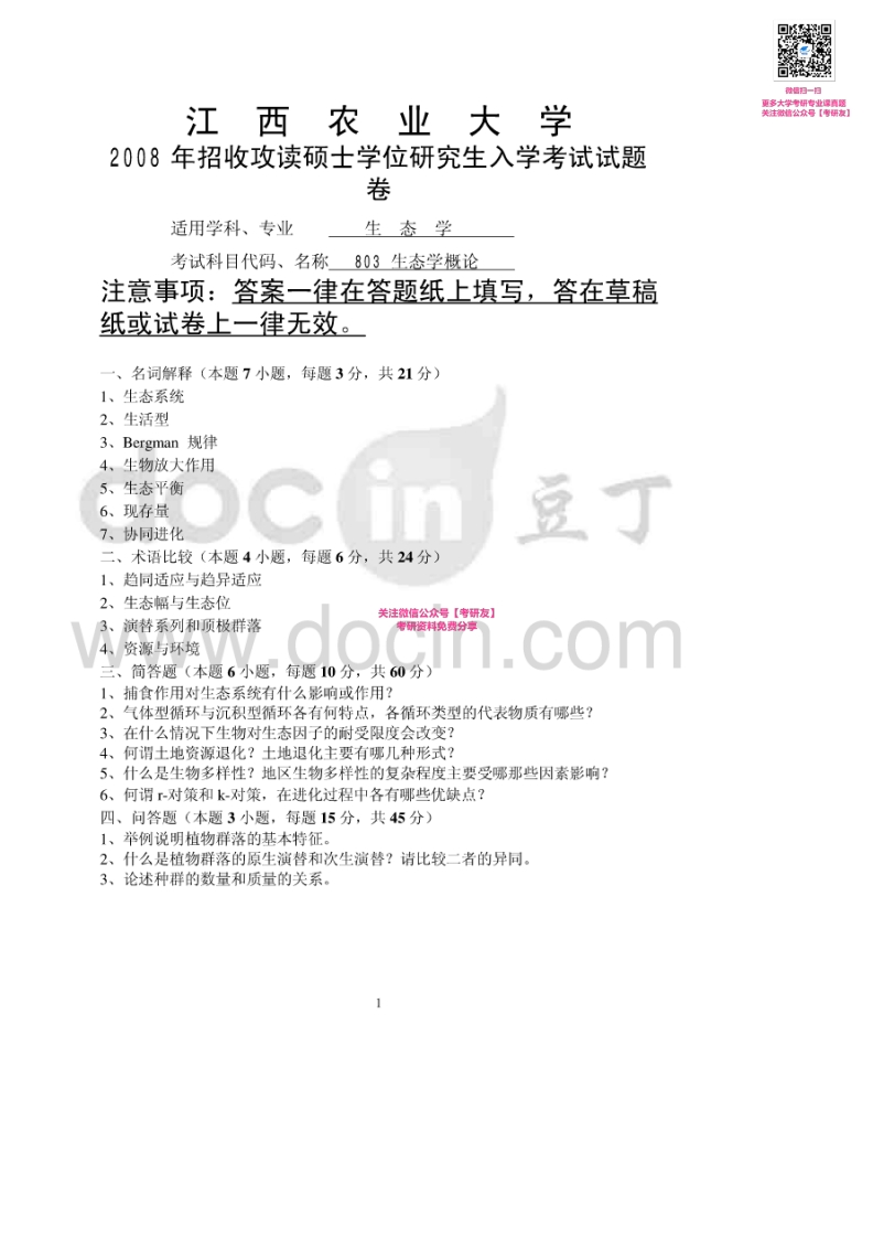 江西农业大学802生态学概论2007-2011、2013考研真题汇编微信公众号微研社免费分享猴哥6个月前发布关注私信0.66MB10页07027江西农业大学802生态学概论2007-2011、2013考研真题汇编微信公众号微研社免费分享此内容为免费资源,请登录后查看¥0 登录查看免费资源 第1页 / 共10页 第2页 / 共10页 第3页 / 共10页 该文档为免费文档,您可直接下载完整版进行阅读 © 版权声明文章版权归作者所有,未经允许请勿转载。THE END《江西农业大学》(802)植物生理学考研资料考研专业课 喜欢就支持一下吧点赞27赞赏 分享QQ空间微博QQ好友海报分享复制链接收藏