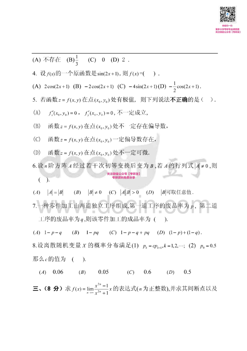 江西农业大学701数学2007-2011、2013-2015考研真题汇编微信公众号微研社免费分享猴哥6个月前发布关注私信1.92MB31页09610江西农业大学701数学2007-2011、2013-2015考研真题汇编微信公众号微研社免费分享此内容为免费资源,请登录后查看¥0 登录查看免费资源 第1页 / 共31页 第2页 / 共31页 第3页 / 共31页 该文档为免费文档,您可直接下载完整版进行阅读 © 版权声明文章版权归作者所有,未经允许请勿转载。THE END《江西农业大学》(701)数学考研资料考研专业课 喜欢就支持一下吧点赞10赞赏 分享QQ空间微博QQ好友海报分享复制链接收藏