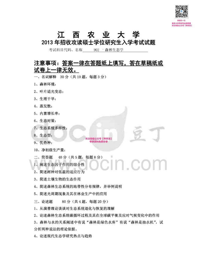 江西农业大学806森林生态学2010、2013-2015考研真题汇编微信公众号微研社免费分享猴哥6个月前发布关注私信0.41MB6页06656江西农业大学806森林生态学2010、2013-2015考研真题汇编微信公众号微研社免费分享此内容为免费资源,请登录后查看¥0 登录查看免费资源 第1页 / 共6页 第2页 / 共6页 第3页 / 共6页 该文档为免费文档,您可直接下载完整版进行阅读 © 版权声明文章版权归作者所有,未经允许请勿转载。THE END《江西农业大学》(806)土壤学考研资料考研专业课 喜欢就支持一下吧点赞56赞赏 分享QQ空间微博QQ好友海报分享复制链接收藏
