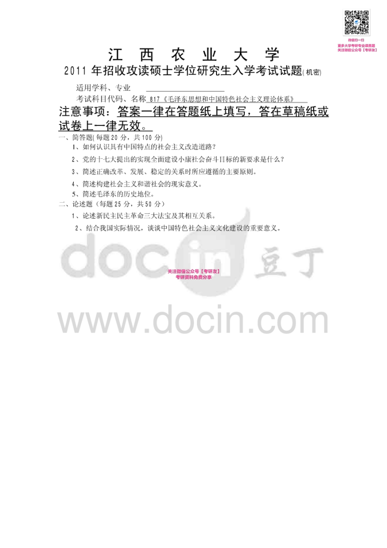 江西农业大学825毛泽东思想和中国特色社会主义理论体系2010-2011、2013-2015考研真题汇编微信公众号微研社免费分享猴哥6个月前发布关注私信0.47MB6页04962江西农业大学825毛泽东思想和中国特色社会主义理论体系2010-2011、2013-2015考研真题汇编微信公众号微研社免费分享此内容为免费资源,请登录后查看¥0 登录查看免费资源 第1页 / 共6页 第2页 / 共6页 第3页 / 共6页 该文档为免费文档,您可直接下载完整版进行阅读 © 版权声明文章版权归作者所有,未经允许请勿转载。THE END考研专业课 喜欢就支持一下吧点赞62赞赏 分享QQ空间微博QQ好友海报分享复制链接收藏