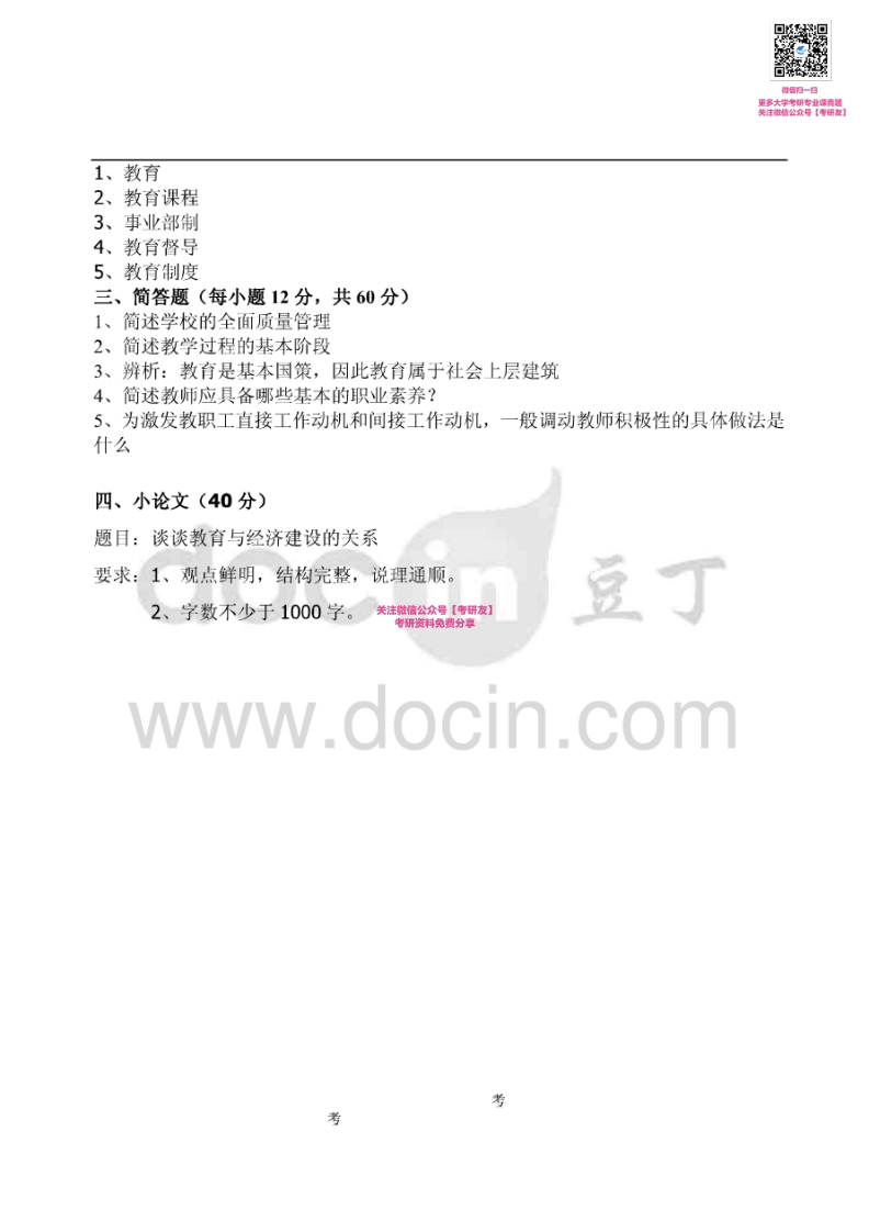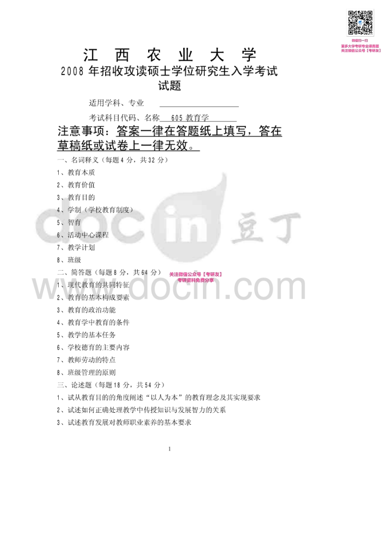 江西农业大学714教育学2007-2011、2013-2015考研真题汇编微信公众号微研社免费分享猴哥6个月前发布关注私信0.63MB9页07257江西农业大学714教育学2007-2011、2013-2015考研真题汇编微信公众号微研社免费分享此内容为免费资源,请登录后查看¥0 登录查看免费资源 第1页 / 共9页 第2页 / 共9页 第3页 / 共9页 该文档为免费文档,您可直接下载完整版进行阅读 © 版权声明文章版权归作者所有,未经允许请勿转载。THE END考研专业课 喜欢就支持一下吧点赞57赞赏 分享QQ空间微博QQ好友海报分享复制链接收藏