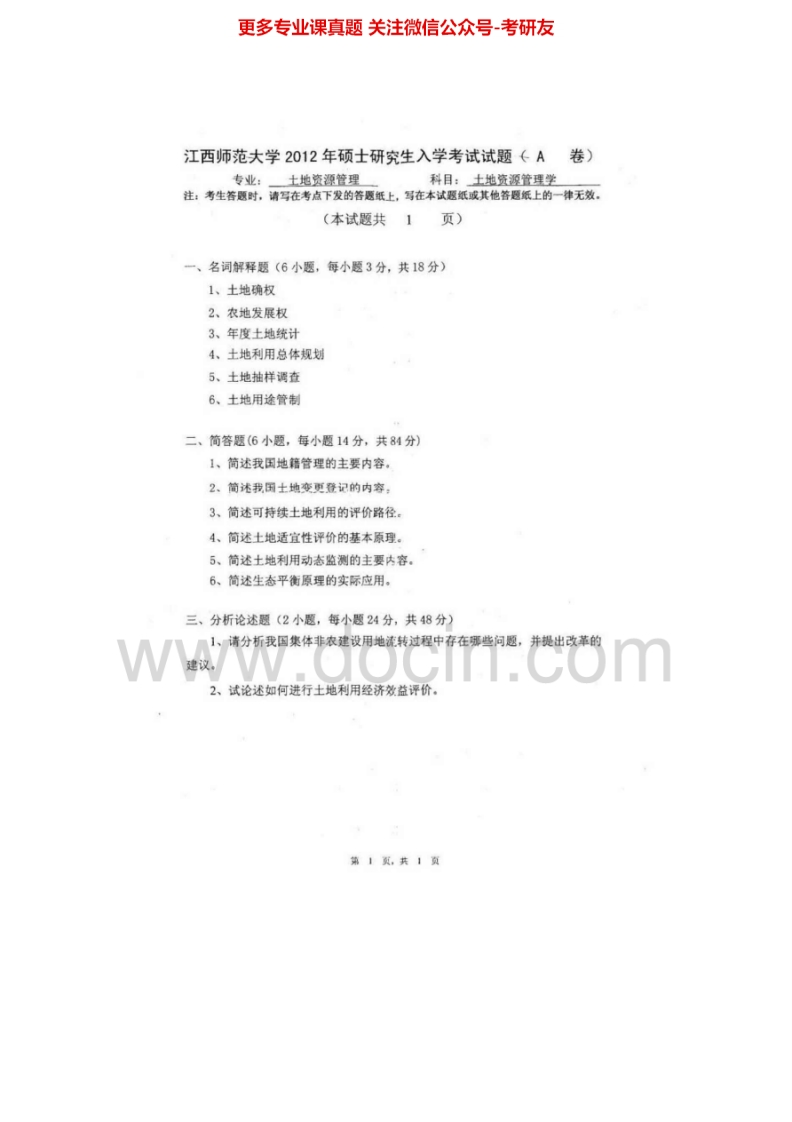 江西师范大学737土地资源管理学2012-2013考研真题汇编-学习资源网 - 分享优质学习资料