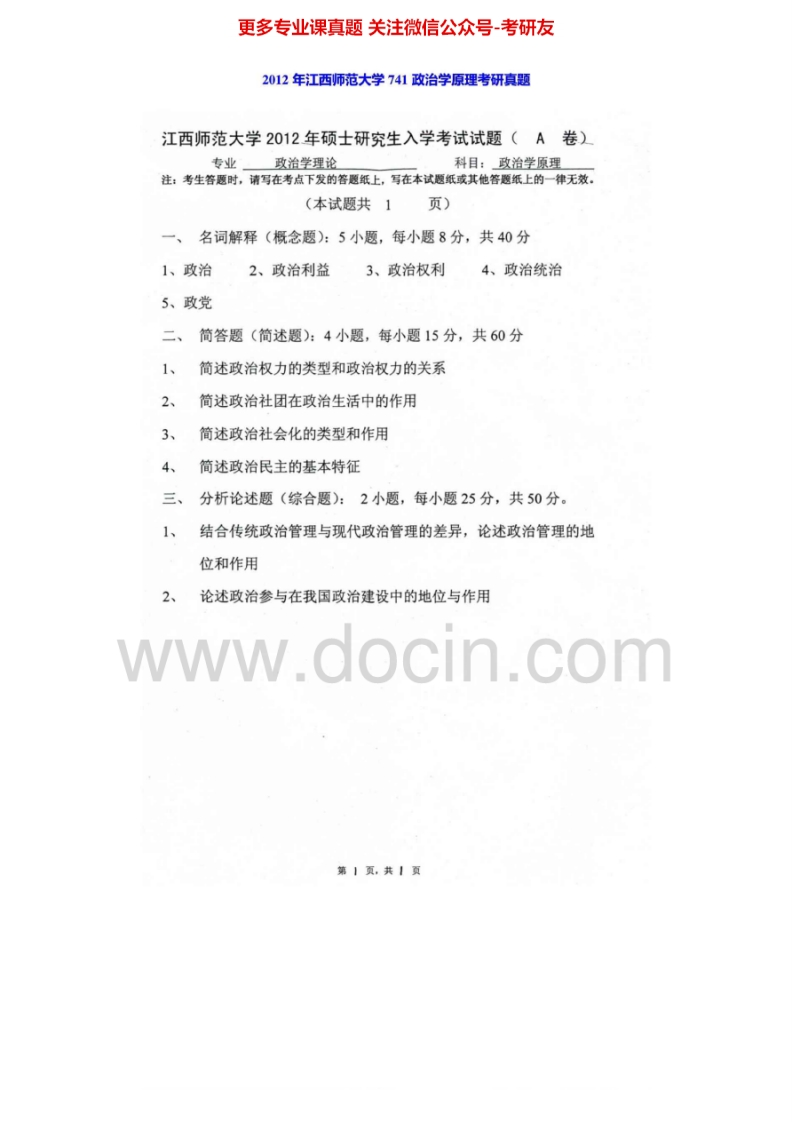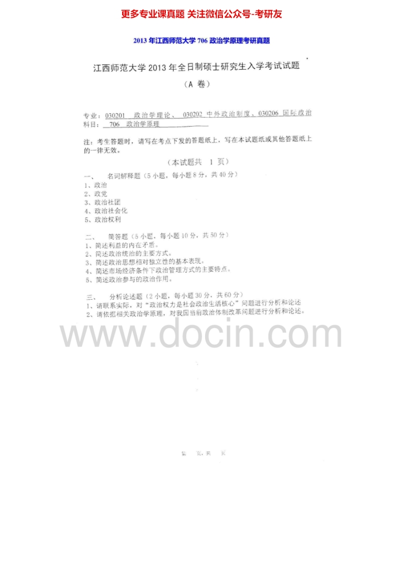 江西师范大学706政治学原理2012-2014年考研真题汇编猴哥6个月前发布关注私信0.47MB3页09946江西师范大学706政治学原理2012-2014年考研真题汇编此内容为免费资源,请登录后查看¥0 登录查看免费资源 第1页 / 共3页 第2页 / 共3页 第3页 / 共3页 已完成全部阅读,共3页 © 版权声明文章版权归作者所有,未经允许请勿转载。THE END《江西师范大学》(706)政治学原理考研资料考研专业课 喜欢就支持一下吧点赞46赞赏 分享QQ空间微博QQ好友海报分享复制链接收藏