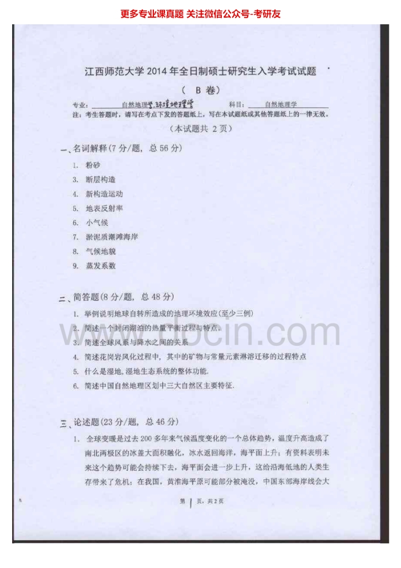 江西师范大学725自然地理学2013-2015考研真题汇编猴哥6个月前发布关注私信2.22MB6页08933江西师范大学725自然地理学2013-2015考研真题汇编此内容为免费资源,请登录后查看¥0 登录查看免费资源 第1页 / 共6页 第2页 / 共6页 第3页 / 共6页 该文档为免费文档,您可直接下载完整版进行阅读 © 版权声明文章版权归作者所有,未经允许请勿转载。THE END考研专业课 喜欢就支持一下吧点赞33赞赏 分享QQ空间微博QQ好友海报分享复制链接收藏