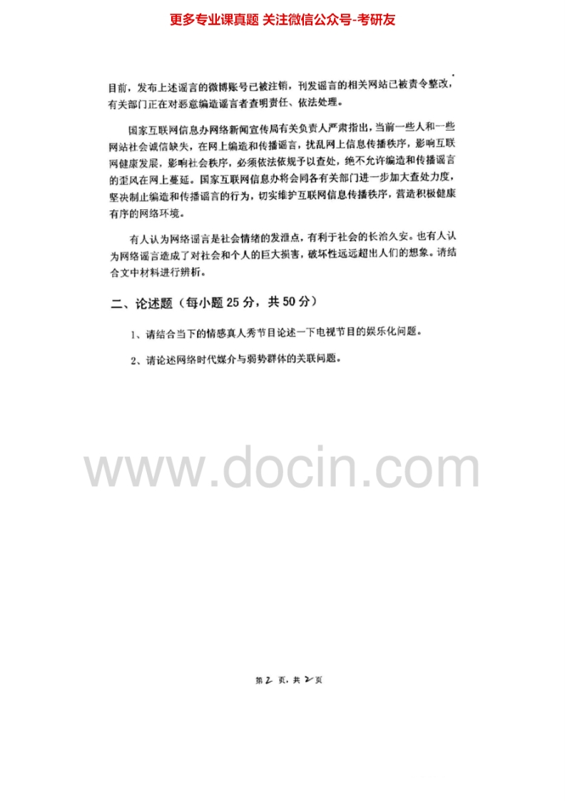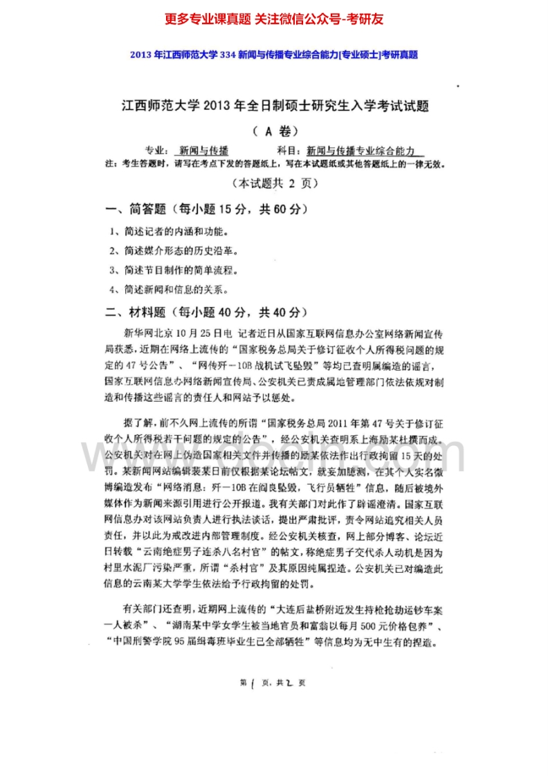 江西师范大学334新闻与传播专业综合能力[专业硕士]2012-2014考研真题汇编猴哥6个月前发布关注私信1.27MB4页04933江西师范大学334新闻与传播专业综合能力[专业硕士]2012-2014考研真题汇编此内容为免费资源,请登录后查看¥0 登录查看免费资源 第1页 / 共4页 第2页 / 共4页 第3页 / 共4页 该文档为免费文档,您可直接下载完整版进行阅读 © 版权声明文章版权归作者所有,未经允许请勿转载。THE END《江西师范大学》(334)新闻与传播专业综合能力考研资料考研专业课 喜欢就支持一下吧点赞33赞赏 分享QQ空间微博QQ好友海报分享复制链接收藏