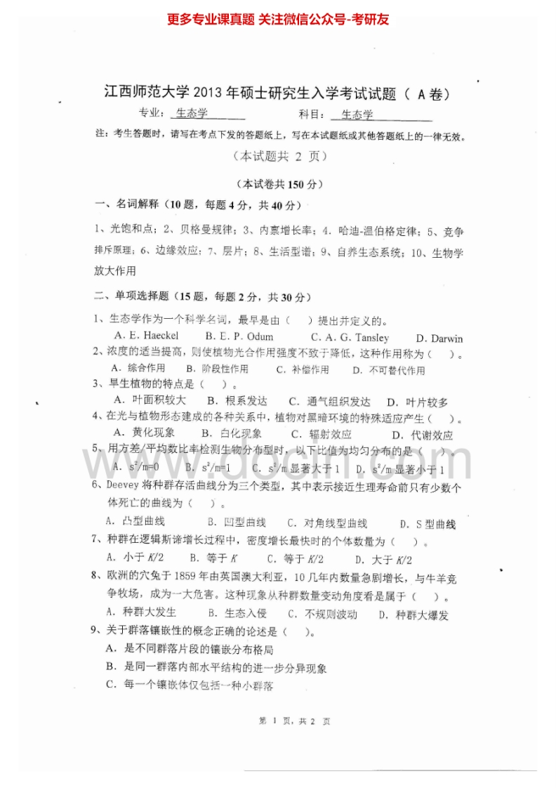 江西师范大学733生态学2012-2015考研真题汇编猴哥6个月前发布关注私信3.04MB8页07820江西师范大学733生态学2012-2015考研真题汇编此内容为免费资源,请登录后查看¥0 登录查看免费资源 第1页 / 共8页 第2页 / 共8页 第3页 / 共8页 该文档为免费文档,您可直接下载完整版进行阅读 © 版权声明文章版权归作者所有,未经允许请勿转载。THE END《江西师范大学》(733)生态学考研资料考研专业课 喜欢就支持一下吧点赞20赞赏 分享QQ空间微博QQ好友海报分享复制链接收藏