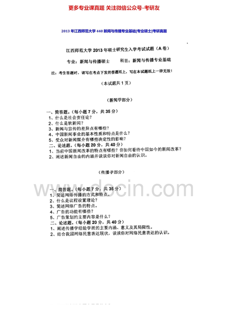 江西师范大学440新闻与传播专业基础[专业硕士]2012-2015考研真题汇编猴哥6个月前发布关注私信2.65MB6页07117江西师范大学440新闻与传播专业基础[专业硕士]2012-2015考研真题汇编此内容为免费资源,请登录后查看¥0 登录查看免费资源 第1页 / 共6页 第2页 / 共6页 第3页 / 共6页 该文档为免费文档,您可直接下载完整版进行阅读 © 版权声明文章版权归作者所有,未经允许请勿转载。THE END《江西师范大学》(440)新闻与传播专业基础考研资料考研专业课 喜欢就支持一下吧点赞17赞赏 分享QQ空间微博QQ好友海报分享复制链接收藏