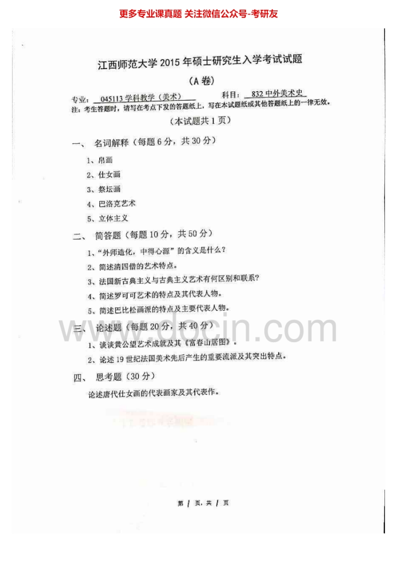 江西师范大学832中外美术史[专业硕士]2013-2015考研真题汇编猴哥6个月前发布关注私信0.85MB3页05233江西师范大学832中外美术史[专业硕士]2013-2015考研真题汇编此内容为免费资源,请登录后查看¥0 登录查看免费资源 第1页 / 共3页 第2页 / 共3页 第3页 / 共3页 已完成全部阅读,共3页 © 版权声明文章版权归作者所有,未经允许请勿转载。THE END考研专业课 喜欢就支持一下吧点赞33赞赏 分享QQ空间微博QQ好友海报分享复制链接收藏