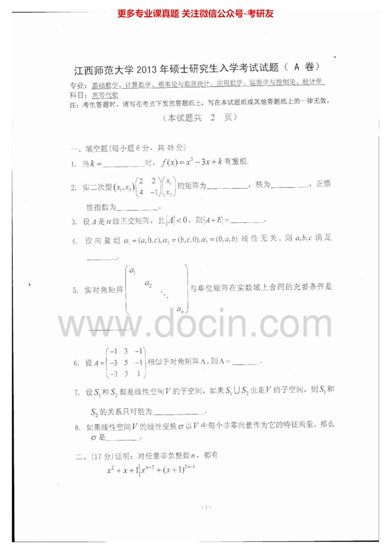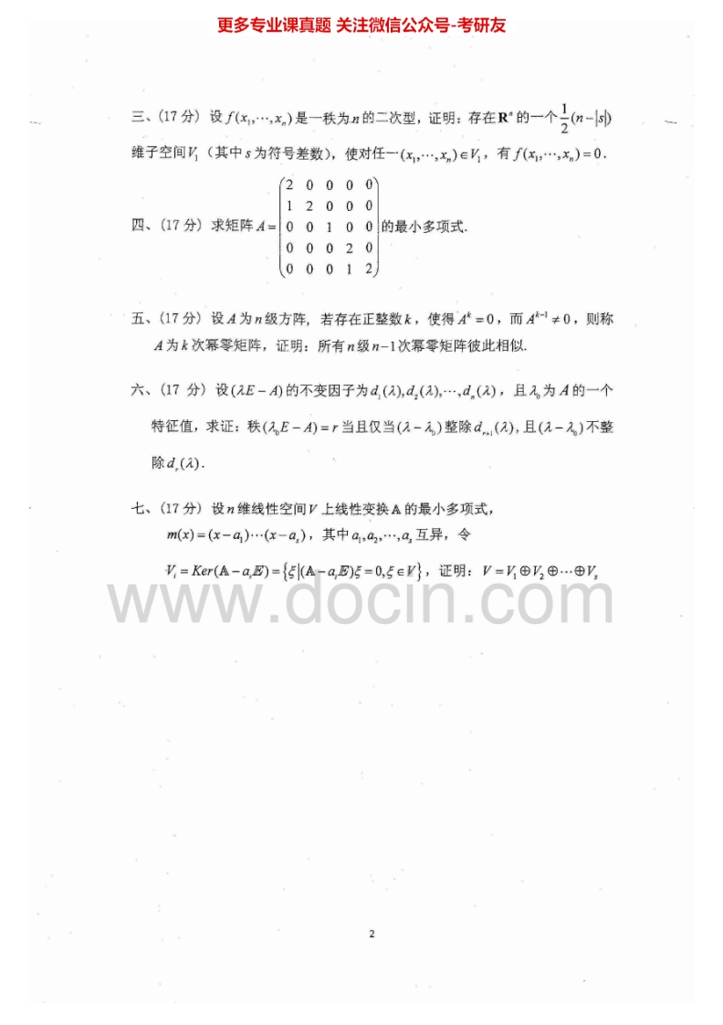 江西师范大学847高等代数2012-2015考研真题汇编猴哥6个月前发布关注私信1.72MB8页05261江西师范大学847高等代数2012-2015考研真题汇编此内容为免费资源,请登录后查看¥0 登录查看免费资源 第1页 / 共8页 第2页 / 共8页 第3页 / 共8页 该文档为免费文档,您可直接下载完整版进行阅读 © 版权声明文章版权归作者所有,未经允许请勿转载。THE END《江西师范大学》(847)数学分析考研资料考研专业课 喜欢就支持一下吧点赞61赞赏 分享QQ空间微博QQ好友海报分享复制链接收藏