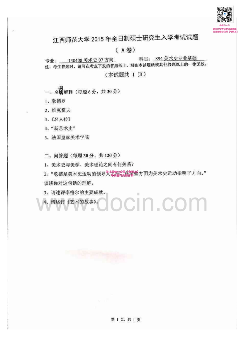 江西师范大学894美术史专业基础2014-2015考研真题汇编猴哥6个月前发布关注私信0.51MB2页09655江西师范大学894美术史专业基础2014-2015考研真题汇编此内容为免费资源,请登录后查看¥0 登录查看免费资源 第1页 / 共2页 第2页 / 共2页 已完成全部阅读,共2页 © 版权声明文章版权归作者所有,未经允许请勿转载。THE END考研专业课 喜欢就支持一下吧点赞55赞赏 分享QQ空间微博QQ好友海报分享复制链接收藏