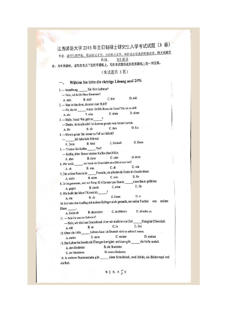 江西师范大学外国语学院243德语历年考研真题汇编猴哥6个月前发布关注私信1.11MB21页07323江西师范大学外国语学院243德语历年考研真题汇编此内容为免费资源,请登录后查看¥0 登录查看免费资源 第1页 / 共21页 第2页 / 共21页 第3页 / 共21页 该文档为免费文档,您可直接下载完整版进行阅读 © 版权声明文章版权归作者所有,未经允许请勿转载。THE END考研专业课 喜欢就支持一下吧点赞23赞赏 分享QQ空间微博QQ好友海报分享复制链接收藏