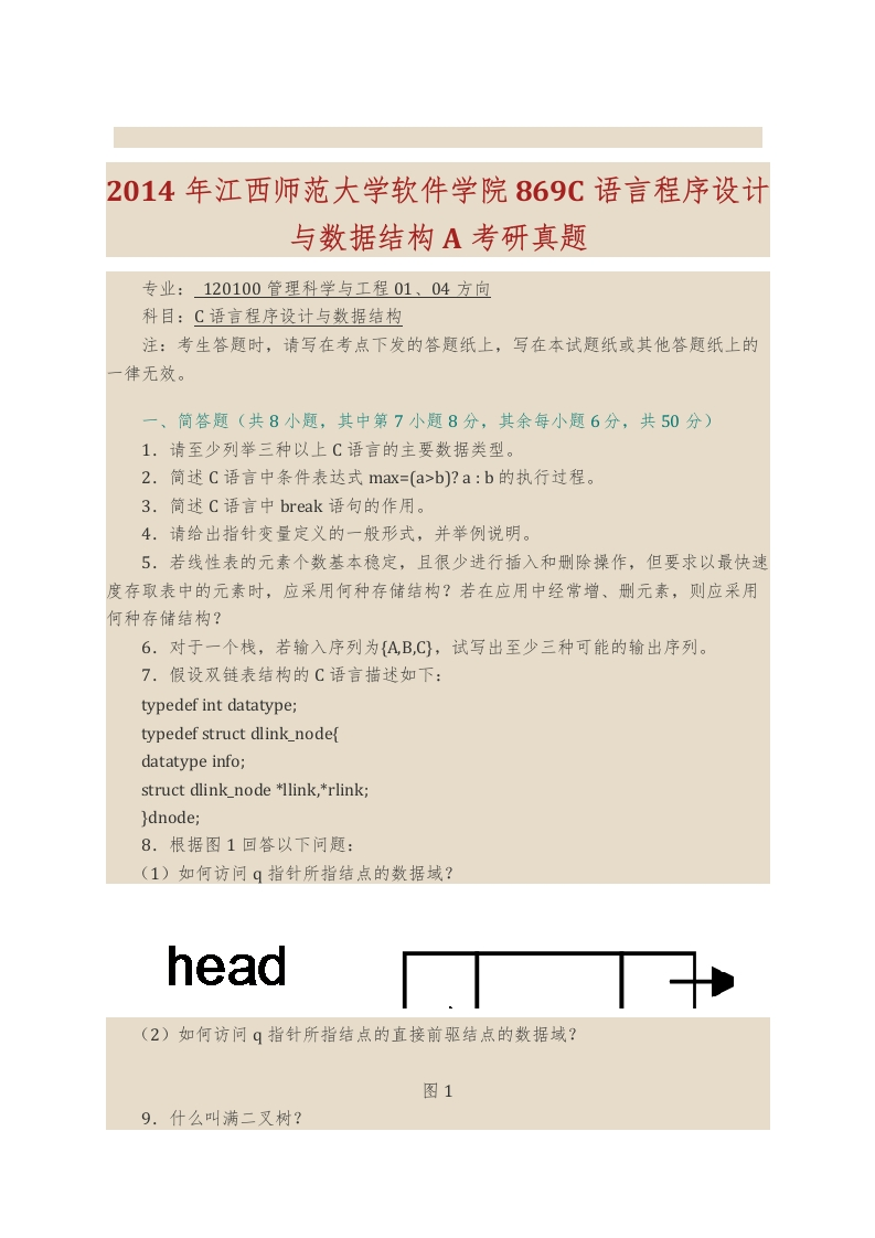 江西师范大学软件学院869C语言程序设计与数据结构历年考研真题汇编猴哥6个月前发布关注私信0.36MB20页07647江西师范大学软件学院869C语言程序设计与数据结构历年考研真题汇编此内容为免费资源,请登录后查看¥0 登录查看免费资源 第1页 / 共20页 第2页 / 共20页 第3页 / 共20页 该文档为免费文档,您可直接下载完整版进行阅读 © 版权声明文章版权归作者所有,未经允许请勿转载。THE END《江西师范大学》(869)C语言程序设计与数据结构考研资料考研专业课 喜欢就支持一下吧点赞47赞赏 分享QQ空间微博QQ好友海报分享复制链接收藏