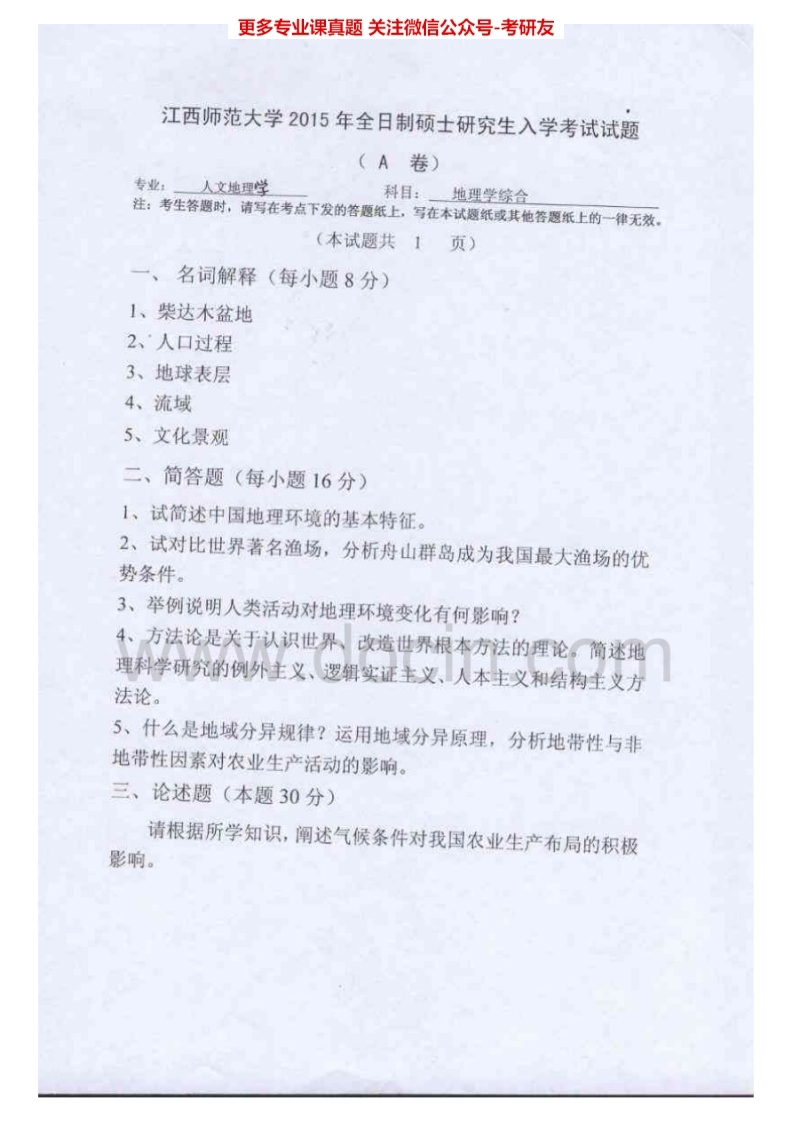 江西师范大学856地理学综合(中国地理、地理科学导论)2013-2015考研真题汇编猴哥6个月前发布关注私信1.09MB3页09643江西师范大学856地理学综合(中国地理、地理科学导论)2013-2015考研真题汇编此内容为免费资源,请登录后查看¥0 登录查看免费资源 第1页 / 共3页 第2页 / 共3页 第3页 / 共3页 已完成全部阅读,共3页 © 版权声明文章版权归作者所有,未经允许请勿转载。THE END《江西师范大学》(856)地理学综合考研资料考研专业课 喜欢就支持一下吧点赞43赞赏 分享QQ空间微博QQ好友海报分享复制链接收藏
