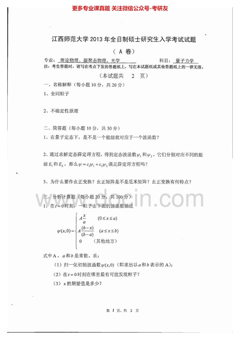 江西师范大学849量子力学2012-2015考研真题汇编_1猴哥6个月前发布关注私信1.96MB8页07248江西师范大学849量子力学2012-2015考研真题汇编_1此内容为免费资源,请登录后查看¥0 登录查看免费资源 第1页 / 共8页 第2页 / 共8页 第3页 / 共8页 该文档为免费文档,您可直接下载完整版进行阅读 © 版权声明文章版权归作者所有,未经允许请勿转载。THE END《江西师范大学》(849)普通物理学考研资料考研专业课 喜欢就支持一下吧点赞48赞赏 分享QQ空间微博QQ好友海报分享复制链接收藏
