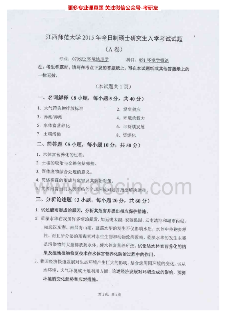 江西师范大学891环境学概论2014-2015考研真题汇编猴哥6个月前发布关注私信0.96MB2页03758江西师范大学891环境学概论2014-2015考研真题汇编此内容为免费资源,请登录后查看¥0 登录查看免费资源 第1页 / 共2页 第2页 / 共2页 已完成全部阅读,共2页 © 版权声明文章版权归作者所有,未经允许请勿转载。THE END考研专业课 喜欢就支持一下吧点赞58赞赏 分享QQ空间微博QQ好友海报分享复制链接收藏