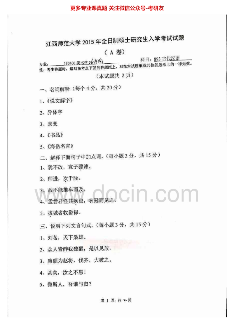 江西师范大学893古代汉语2014-2015考研真题汇编猴哥6个月前发布关注私信1.18MB4页04465江西师范大学893古代汉语2014-2015考研真题汇编此内容为免费资源,请登录后查看¥0 登录查看免费资源 第1页 / 共4页 第2页 / 共4页 第3页 / 共4页 该文档为免费文档,您可直接下载完整版进行阅读 © 版权声明文章版权归作者所有,未经允许请勿转载。THE END考研专业课 喜欢就支持一下吧点赞65赞赏 分享QQ空间微博QQ好友海报分享复制链接收藏