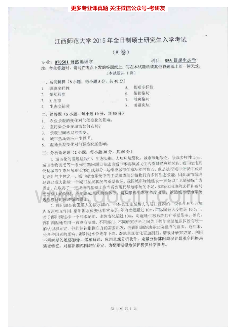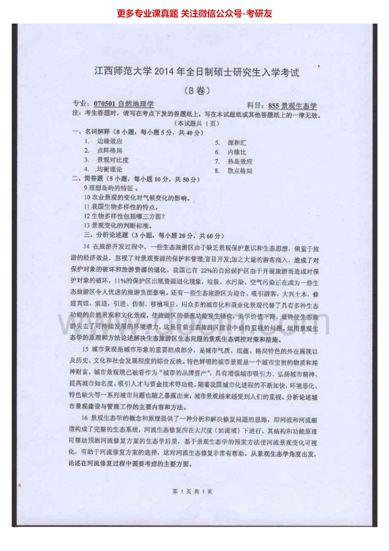 江西师范大学855景观生态学2013-2015考研真题汇编猴哥6个月前发布关注私信1.63MB3页05349江西师范大学855景观生态学2013-2015考研真题汇编此内容为免费资源,请登录后查看¥0 登录查看免费资源 第1页 / 共3页 第2页 / 共3页 第3页 / 共3页 已完成全部阅读,共3页 © 版权声明文章版权归作者所有,未经允许请勿转载。THE END考研专业课 喜欢就支持一下吧点赞49赞赏 分享QQ空间微博QQ好友海报分享复制链接收藏