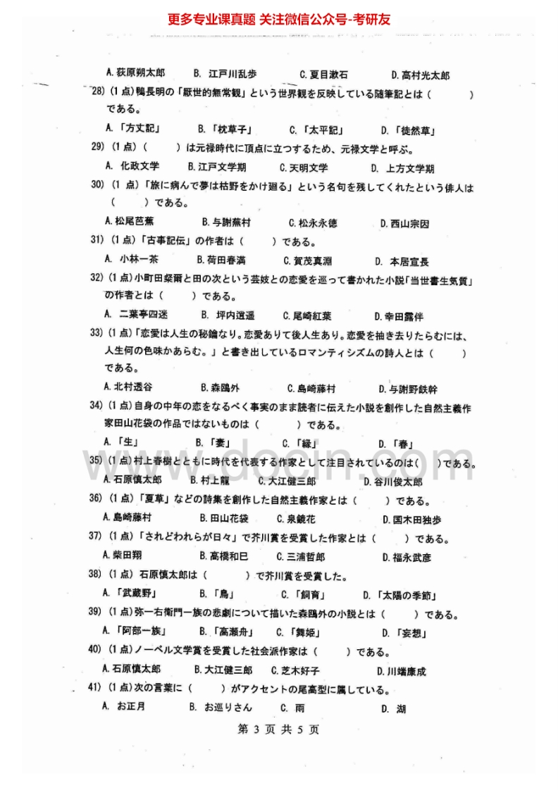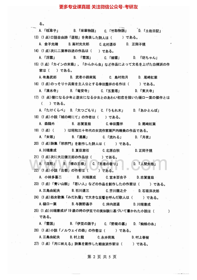 江西师范大学843日语专业基础(含日本文学日本文化)2012-2015考研真题汇编猴哥6个月前发布关注私信6.04MB19页07653江西师范大学843日语专业基础(含日本文学日本文化)2012-2015考研真题汇编此内容为免费资源,请登录后查看¥0 登录查看免费资源 第1页 / 共19页 第2页 / 共19页 第3页 / 共19页 该文档为免费文档,您可直接下载完整版进行阅读 © 版权声明文章版权归作者所有,未经允许请勿转载。THE END《江西师范大学》(843)日语专业基础(含日本文学,日本文化)考研资料考研专业课 喜欢就支持一下吧点赞53赞赏 分享QQ空间微博QQ好友海报分享复制链接收藏