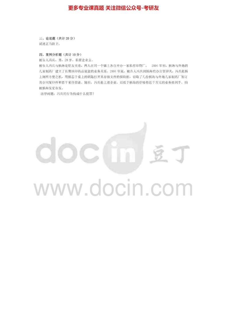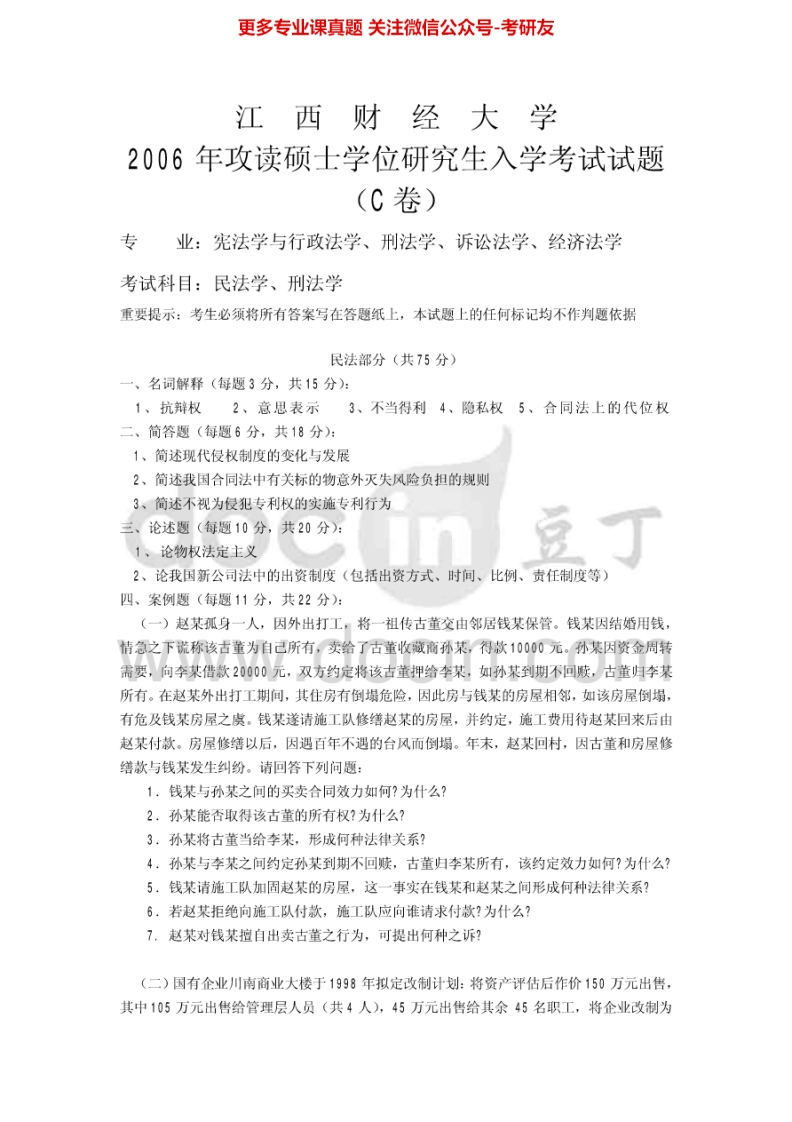 江西财经大学810民法学、刑法学2005-2006考研真题汇编猴哥6个月前发布关注私信0.38MB4页05044江西财经大学810民法学、刑法学2005-2006考研真题汇编此内容为免费资源,请登录后查看¥0 登录查看免费资源 第1页 / 共4页 第2页 / 共4页 第3页 / 共4页 该文档为免费文档,您可直接下载完整版进行阅读 © 版权声明文章版权归作者所有,未经允许请勿转载。THE END《江西财经大学》(810)民法学、民事诉讼法学考研资料考研专业课 喜欢就支持一下吧点赞44赞赏 分享QQ空间微博QQ好友海报分享复制链接收藏