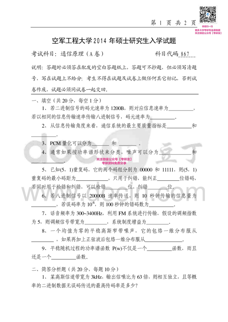 空军工程大学442专业综合(通信原理或空军通信兵战术):通信原理12、14-15考研真题汇编_1猴哥6个月前发布关注私信0.49MB6页07344空军工程大学442专业综合(通信原理或空军通信兵战术):通信原理12、14-15考研真题汇编_1此内容为免费资源,请登录后查看¥0 登录查看免费资源 第1页 / 共6页 第2页 / 共6页 第3页 / 共6页 该文档为免费文档,您可直接下载完整版进行阅读 © 版权声明文章版权归作者所有,未经允许请勿转载。THE END考研专业课 喜欢就支持一下吧点赞44赞赏 分享QQ空间微博QQ好友海报分享复制链接收藏