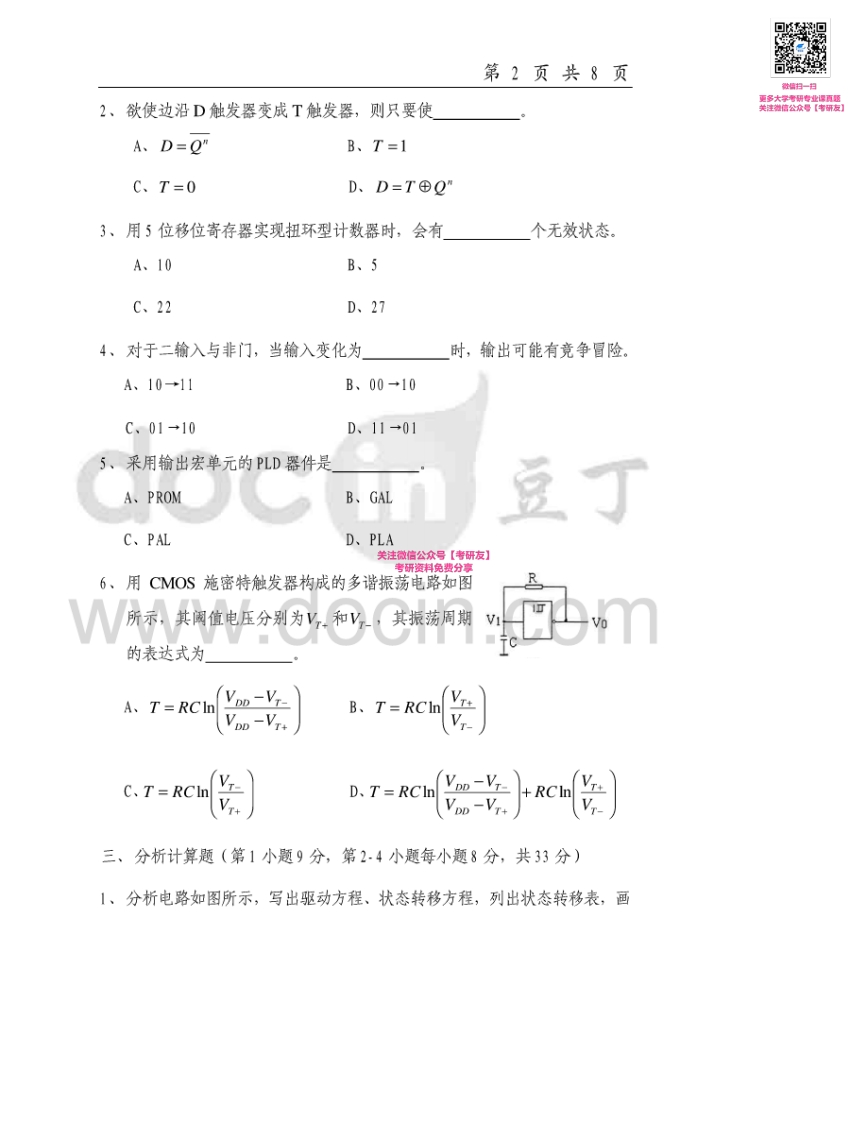 空军工程大学891数字电路设计与信号系统分析2012-2015考研真题汇编猴哥6个月前发布关注私信1.90MB28页06055空军工程大学891数字电路设计与信号系统分析2012-2015考研真题汇编此内容为免费资源,请登录后查看¥0 登录查看免费资源 第1页 / 共28页 第2页 / 共28页 第3页 / 共28页 该文档为免费文档,您可直接下载完整版进行阅读 © 版权声明文章版权归作者所有,未经允许请勿转载。THE END《空军工程大学》(891)数学综合考研资料考研专业课 喜欢就支持一下吧点赞55赞赏 分享QQ空间微博QQ好友海报分享复制链接收藏