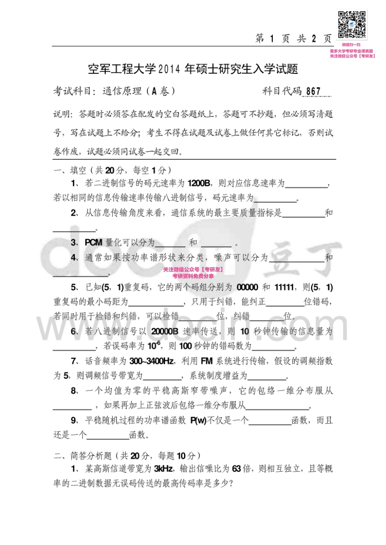 空军工程大学865通信原理2012、2014-2015考研真题汇编猴哥6个月前发布关注私信0.50MB6页09931空军工程大学865通信原理2012、2014-2015考研真题汇编此内容为免费资源,请登录后查看¥0 登录查看免费资源 第1页 / 共6页 第2页 / 共6页 第3页 / 共6页 该文档为免费文档,您可直接下载完整版进行阅读 © 版权声明文章版权归作者所有,未经允许请勿转载。THE END《空军工程大学》(865)信息通信指挥基础考研资料考研专业课 喜欢就支持一下吧点赞31赞赏 分享QQ空间微博QQ好友海报分享复制链接收藏