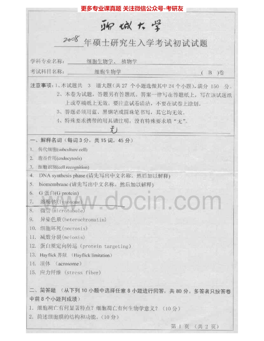 聊城大学624细胞生物学2007-2015考研真题汇编.Image.Marked猴哥6个月前发布关注私信4.24MB11页04117聊城大学624细胞生物学2007-2015考研真题汇编.Image.Marked此内容为免费资源,请登录后查看¥0 登录查看免费资源 第1页 / 共11页 第2页 / 共11页 第3页 / 共11页 该文档为免费文档,您可直接下载完整版进行阅读 © 版权声明文章版权归作者所有,未经允许请勿转载。THE END《聊城大学》(624)细胞生物学考研资料考研专业课 喜欢就支持一下吧点赞17赞赏 分享QQ空间微博QQ好友海报分享复制链接收藏