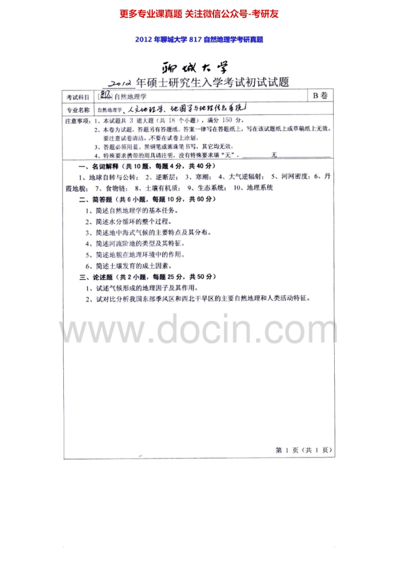 聊城大学819自然地理学2007-2014真题及答案考研真题汇编.Image.Marked猴哥6个月前发布关注私信1.86MB8页05317聊城大学819自然地理学2007-2014真题及答案考研真题汇编.Image.Marked此内容为免费资源,请登录后查看¥0 登录查看免费资源 第1页 / 共8页 第2页 / 共8页 第3页 / 共8页 该文档为免费文档,您可直接下载完整版进行阅读 © 版权声明文章版权归作者所有,未经允许请勿转载。THE END《聊城大学》(819)人文地理学考研资料考研专业课 喜欢就支持一下吧点赞17赞赏 分享QQ空间微博QQ好友海报分享复制链接收藏