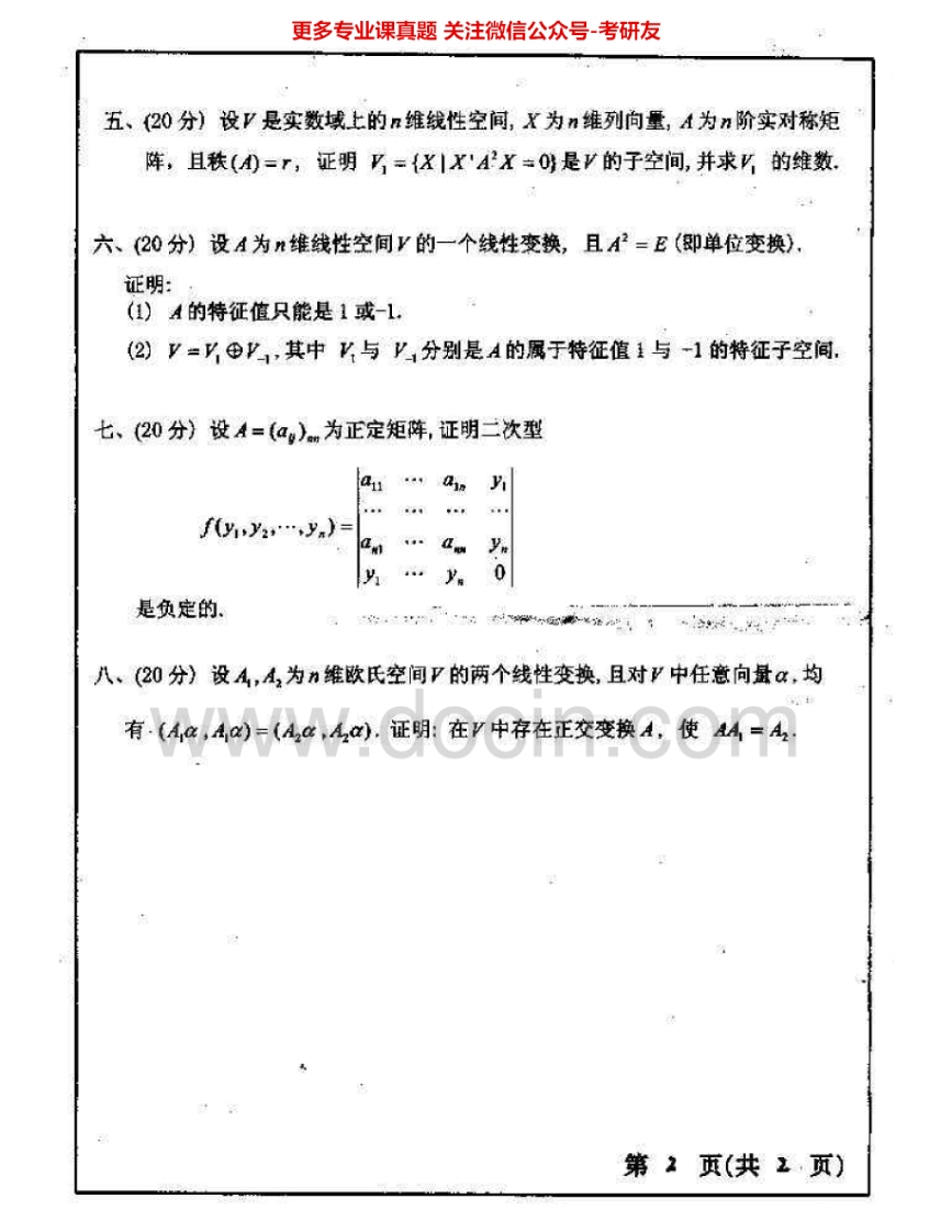 聊城大学814高等代数2006-2015考研真题汇编.Image.Marked猴哥6个月前发布关注私信5.73MB19页06510聊城大学814高等代数2006-2015考研真题汇编.Image.Marked此内容为免费资源,请登录后查看¥0 登录查看免费资源 第1页 / 共19页 第2页 / 共19页 第3页 / 共19页 该文档为免费文档,您可直接下载完整版进行阅读 © 版权声明文章版权归作者所有,未经允许请勿转载。THE END《聊城大学》(814)高等代数考研资料考研专业课 喜欢就支持一下吧点赞10赞赏 分享QQ空间微博QQ好友海报分享复制链接收藏