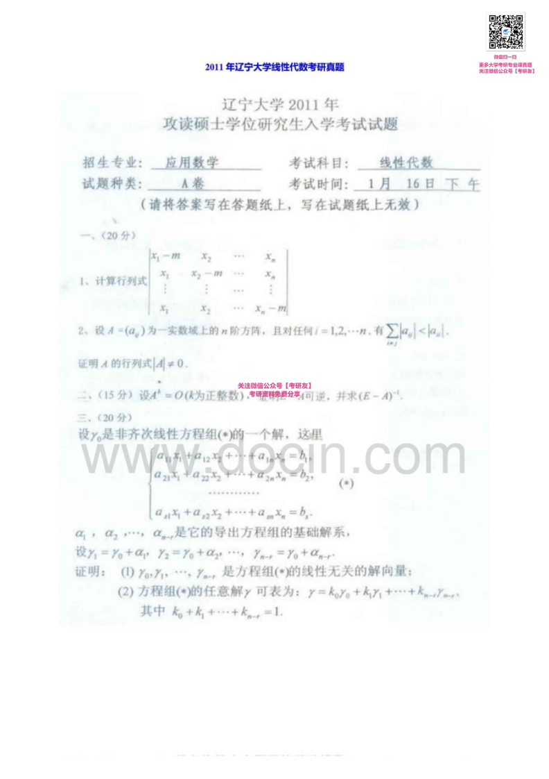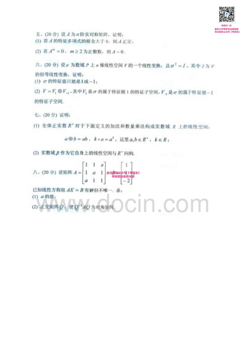 辽宁大学线性代数2003-2005、2007-2012考研真题汇编猴哥6个月前发布关注私信3.64MB18页04748辽宁大学线性代数2003-2005、2007-2012考研真题汇编此内容为免费资源,请登录后查看¥0 登录查看免费资源 第1页 / 共18页 第2页 / 共18页 第3页 / 共18页 该文档为免费文档,您可直接下载完整版进行阅读 © 版权声明文章版权归作者所有,未经允许请勿转载。THE END考研专业课 喜欢就支持一下吧点赞48赞赏 分享QQ空间微博QQ好友海报分享复制链接收藏