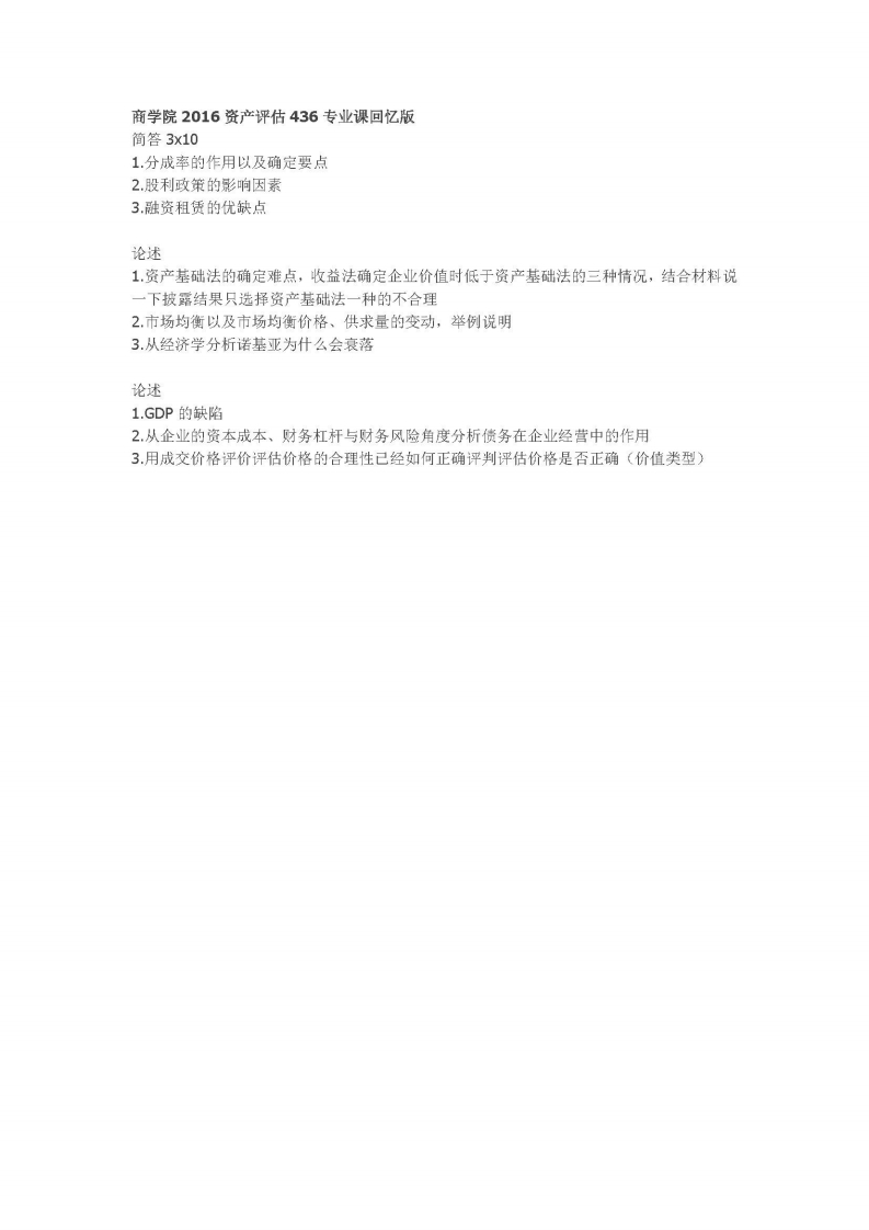 中国人民大学-436资产评估专业基础-2016-学习资源网 - 学习助手专注分享优质学习资源
