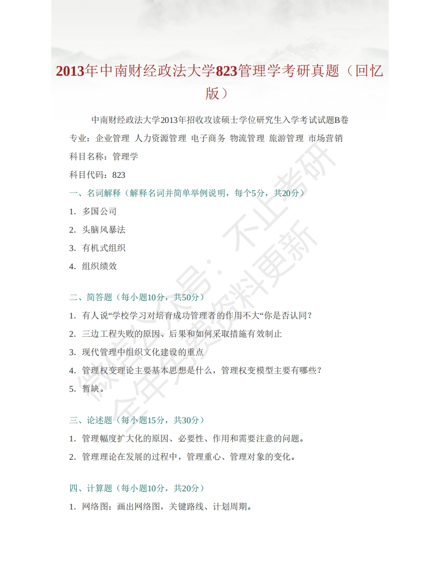 中南财经政法大学823管理学考研真题汇编-关注公众号硕识考研获取更多考研资料猴哥6个月前发布关注私信10.55MB143页05914中南财经政法大学823管理学考研真题汇编-关注公众号硕识考研获取更多考研资料此内容为免费资源,请登录后查看¥0 登录查看免费资源 第1页 / 共143页 第2页 / 共143页 第3页 / 共143页 该文档为免费文档,您可直接下载完整版进行阅读 © 版权声明文章版权归作者所有,未经允许请勿转载。THE END《中南财经政法大学》(823)管理学2考研资料考研专业课 喜欢就支持一下吧点赞14赞赏 分享QQ空间微博QQ好友海报分享复制链接收藏