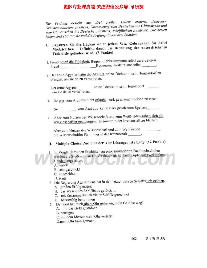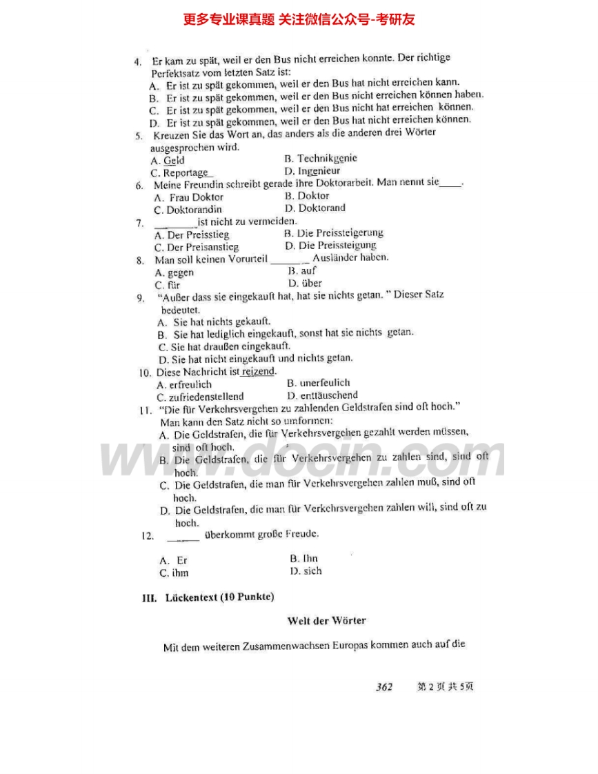 中国人民大学629基础德语2003-2007考研真题汇编.Image.Marked猴哥6个月前发布关注私信15.74MB51页05251中国人民大学629基础德语2003-2007考研真题汇编.Image.Marked此内容为免费资源,请登录后查看¥0 登录查看免费资源 第1页 / 共51页 第2页 / 共51页 第3页 / 共51页 该文档为免费文档,您可直接下载完整版进行阅读 © 版权声明文章版权归作者所有,未经允许请勿转载。THE END考研专业课 喜欢就支持一下吧点赞51赞赏 分享QQ空间微博QQ好友海报分享复制链接收藏