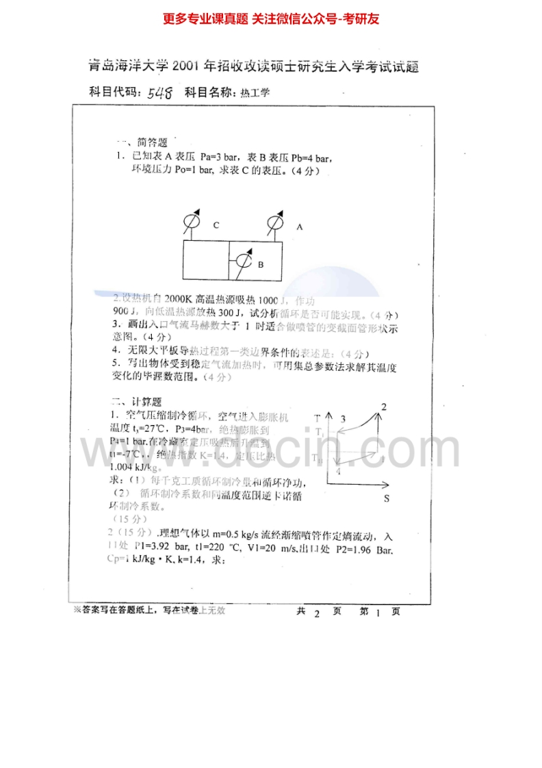 中国海洋大学841热工学2001-2003、2006考研真题汇编.Image.Marked猴哥6个月前发布关注私信1.74MB8页06817中国海洋大学841热工学2001-2003、2006考研真题汇编.Image.Marked此内容为免费资源,请登录后查看¥0 登录查看免费资源 第1页 / 共8页 第2页 / 共8页 第3页 / 共8页 该文档为免费文档,您可直接下载完整版进行阅读 © 版权声明文章版权归作者所有,未经允许请勿转载。THE END考研专业课 喜欢就支持一下吧点赞17赞赏 分享QQ空间微博QQ好友海报分享复制链接收藏