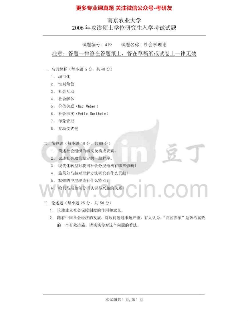 南京农业大学819社会学理论2004-2009考研真题汇编.Image.Marked猴哥6个月前发布关注私信0.52MB6页05162南京农业大学819社会学理论2004-2009考研真题汇编.Image.Marked此内容为免费资源,请登录后查看¥0 登录查看免费资源 第1页 / 共6页 第2页 / 共6页 第3页 / 共6页 该文档为免费文档,您可直接下载完整版进行阅读 © 版权声明文章版权归作者所有,未经允许请勿转载。THE END《南京农业大学》(819)社会学理论考研资料考研专业课 喜欢就支持一下吧点赞62赞赏 分享QQ空间微博QQ好友海报分享复制链接收藏