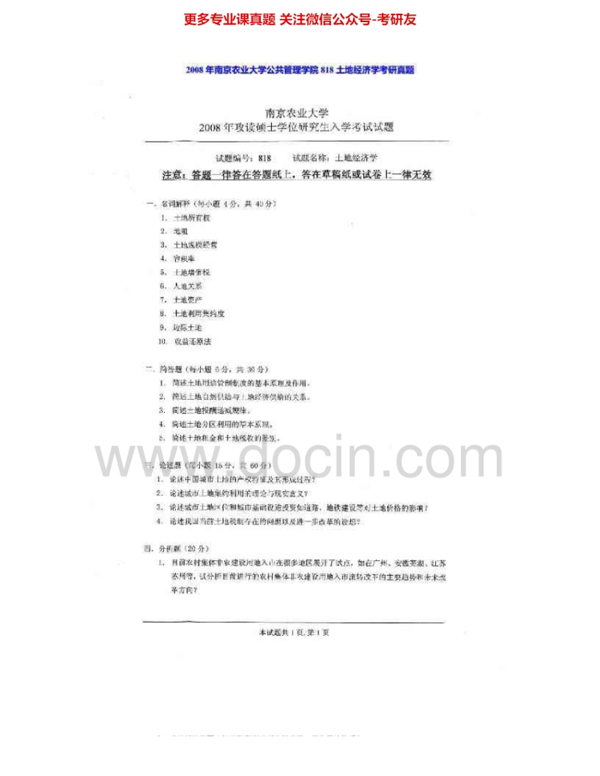 南京农业大学818土地经济学2001、2003-2009其中07有答案考研真题汇编.Image.Marked猴哥6个月前发布关注私信4.77MB15页06554南京农业大学818土地经济学2001、2003-2009其中07有答案考研真题汇编.Image.Marked此内容为免费资源,请登录后查看¥0 登录查看免费资源 第1页 / 共15页 第2页 / 共15页 第3页 / 共15页 该文档为免费文档,您可直接下载完整版进行阅读 © 版权声明文章版权归作者所有,未经允许请勿转载。THE END考研专业课 喜欢就支持一下吧点赞54赞赏 分享QQ空间微博QQ好友海报分享复制链接收藏