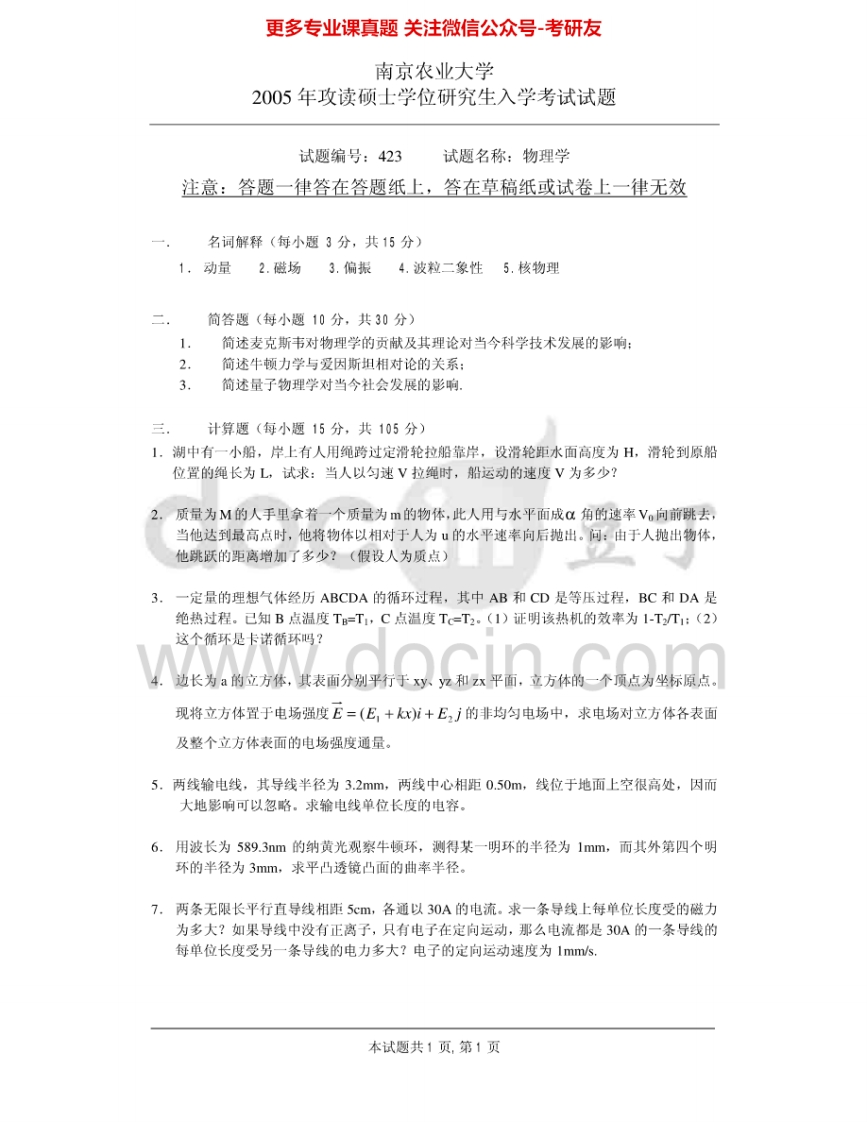 南京农业大学836物理学2003-2005考研真题汇编.Image.Marked猴哥6个月前发布关注私信0.57MB3页08541南京农业大学836物理学2003-2005考研真题汇编.Image.Marked此内容为免费资源,请登录后查看¥0 登录查看免费资源 第1页 / 共3页 第2页 / 共3页 第3页 / 共3页 已完成全部阅读,共3页 © 版权声明文章版权归作者所有,未经允许请勿转载。THE END考研专业课 喜欢就支持一下吧点赞41赞赏 分享QQ空间微博QQ好友海报分享复制链接收藏